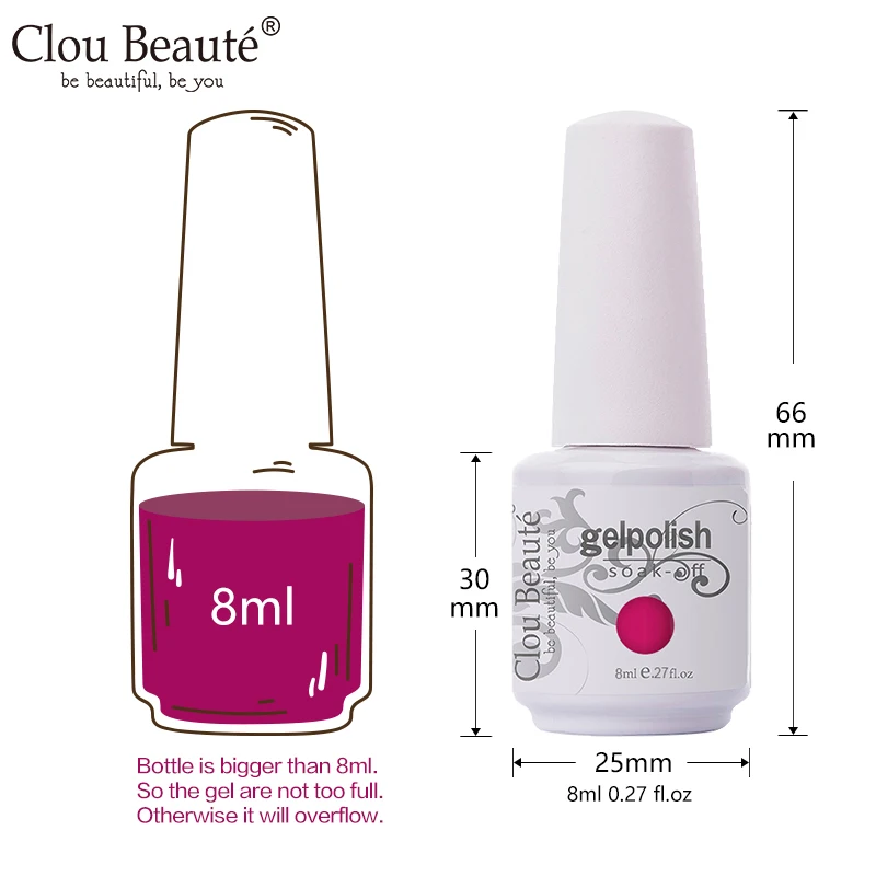 Гель-лак Clou Beaute полуперманентный Гибридный для УФ-блеска, 8 мл, 115 цветов