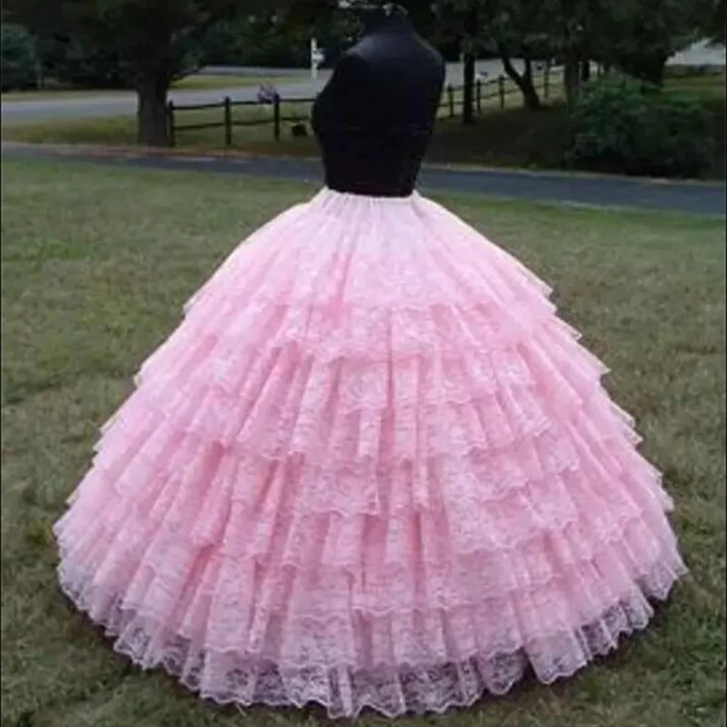 Женская кружевная бальная юбка, розовая винтажная длинная бальная юбка, 9 слоев, 2020