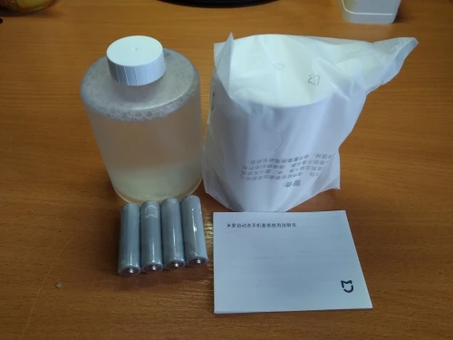 Очень быстрая доставка. Комплектация с батарейками и жидкостью, поставил и пользуйся. Лучший диспенсер.