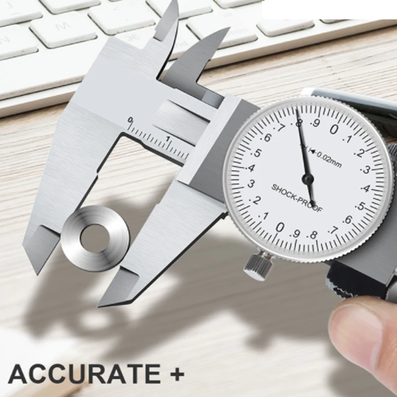 Ударопрочный циферблатный штангенциркуль из нержавеющей стали, 6 дю...