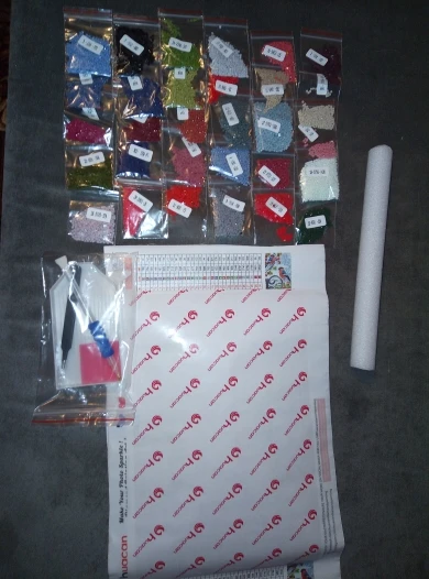 Дошло быстро, все в наличии, полотно намотано на валик, стразы по зип пакетам, рекомендую