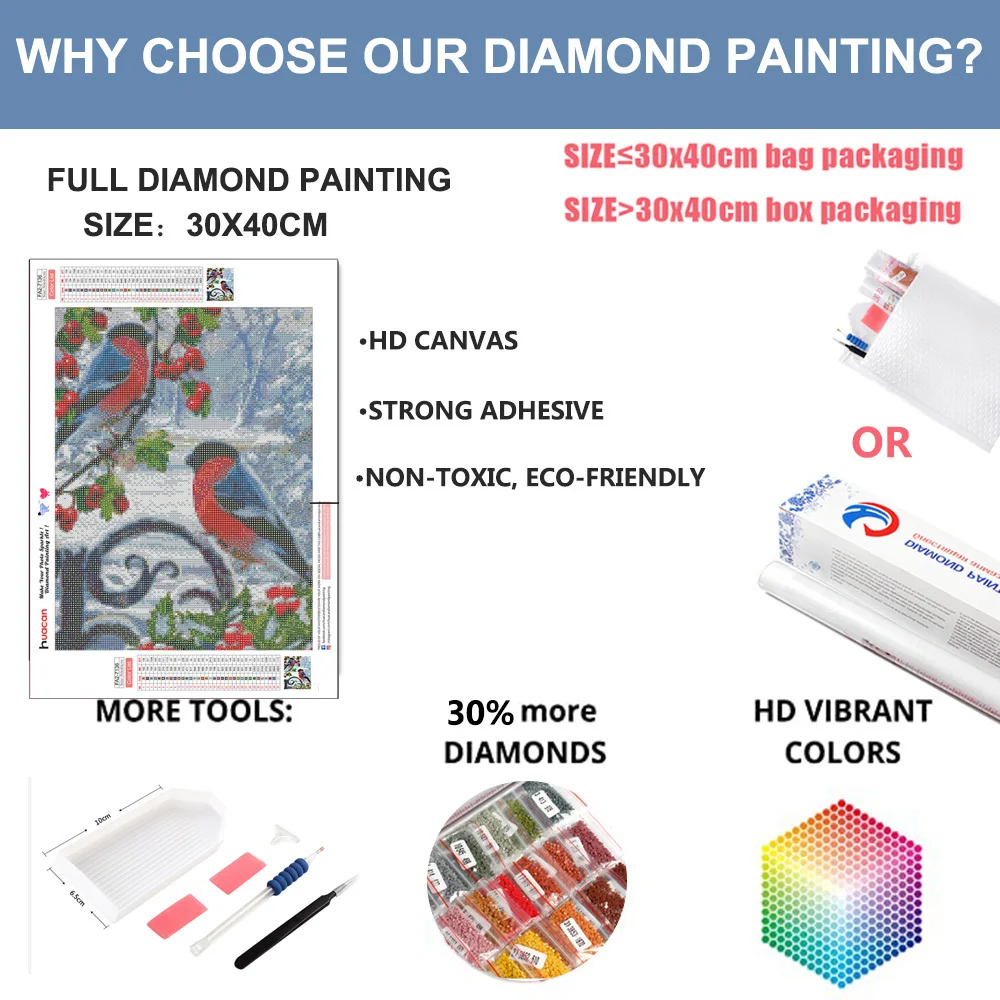 Наши преимущества: 30% дополнительных алмазов, лучшие инструменты, рулонный холст с пеной, 24 часа обслуживания клиентов