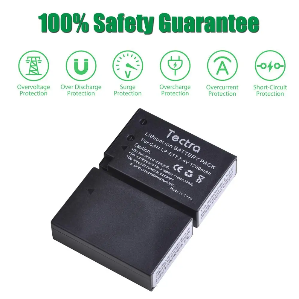 Батарея Tectra LP-E17 в процессе обновления. Он покажет уровень мощности на Canon Rebel T6i, T6s, T7i, EOS SL2 ,750D, 760D, 77D , 800D, 8000D, камера EOS 200D KISS X8i Digita SLR (не включает в себя камеру Canon M Series s ) . Не отображает Срок службы батареи в камерах Canon Eos M3, M5, M6. Аккумуляторы не заряжаются при помощи оригинального зарядного устройства!