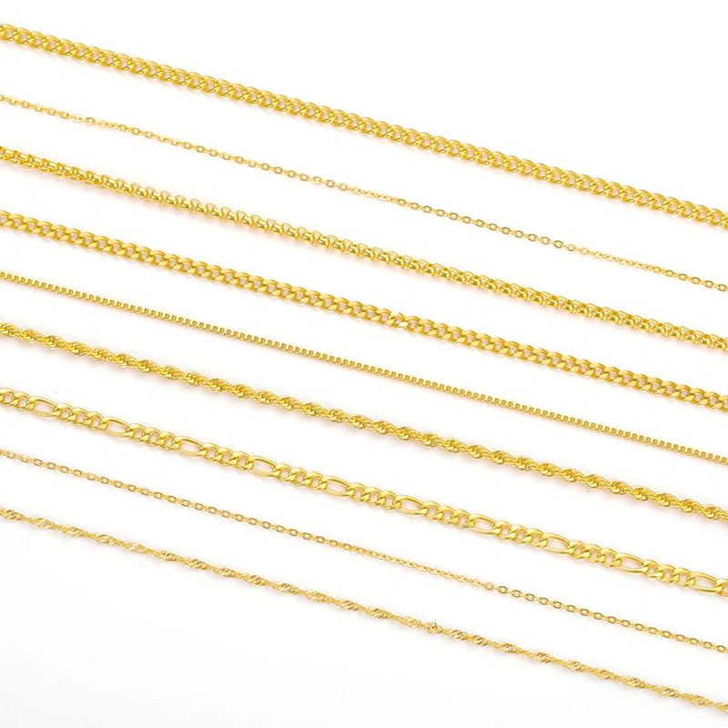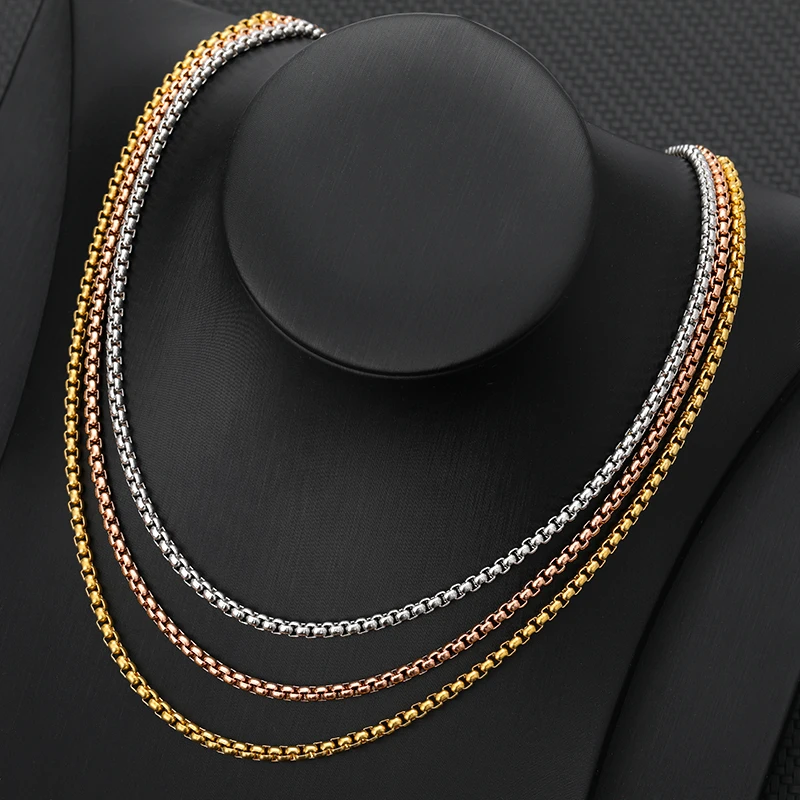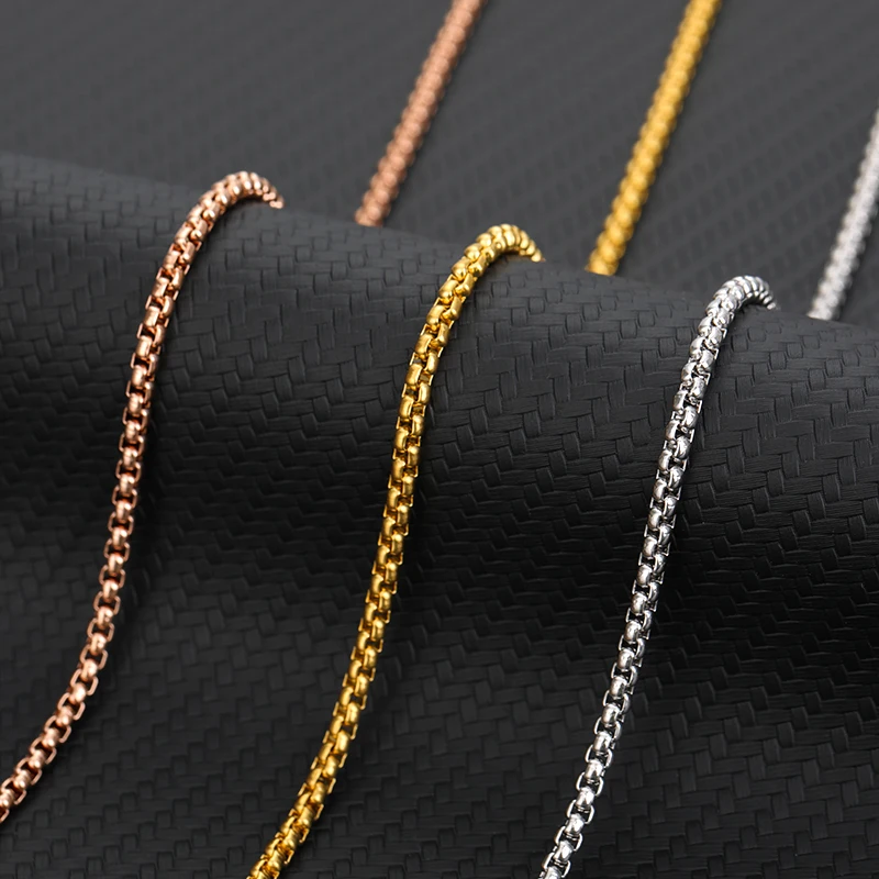 Тип: колье цепь Цвет: золото, розовое золото, серебро Для толпы: женщины, мужчины, дети Материал: нержавеющая сталь Заявление: Добро пожаловать оптом Прямая поставка: Да, добро пожаловать Упаковка: полипропиленовая упаковка Длина цепочки: 43 см (16,9 дюйма),45 см (17,7 дюйма),50 см (19,7 дюйма),55 см (21,7 дюйма)