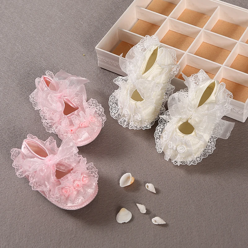 Обувь для новорожденных принцесс с мягкой подошвой, нескользящая вечерние для девочек, Свадебная обувь для кроватки для маленьких девочек 0-18 месяцев