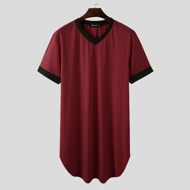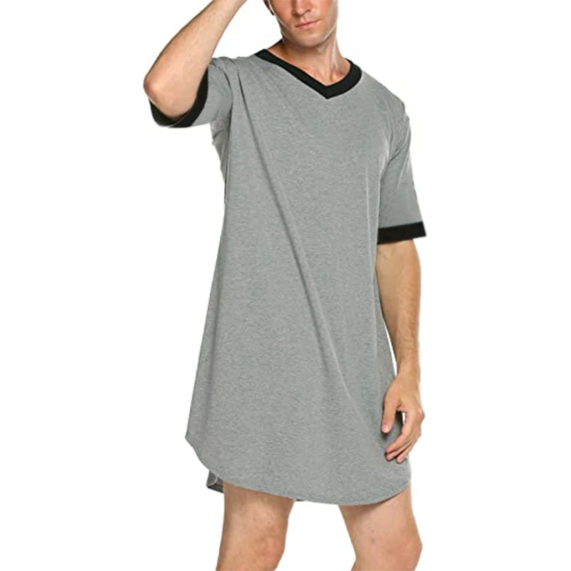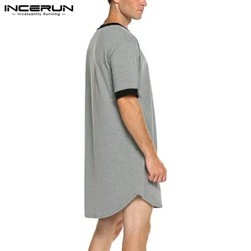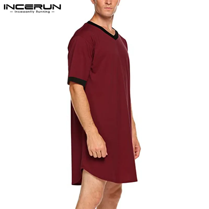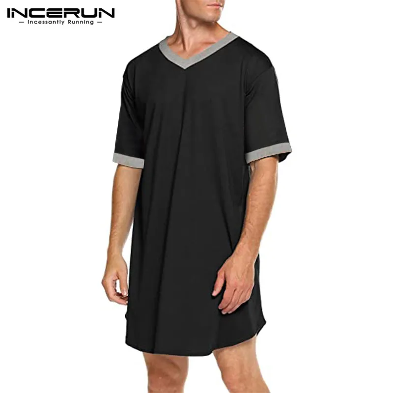 Халат INCERUN мужской с V-образным вырезом, модная ночная рубашка в стиле пэчворк, одежда для сна, однотонная Пижама с коротким рукавом, свободная Ночная одежда, размера плюс