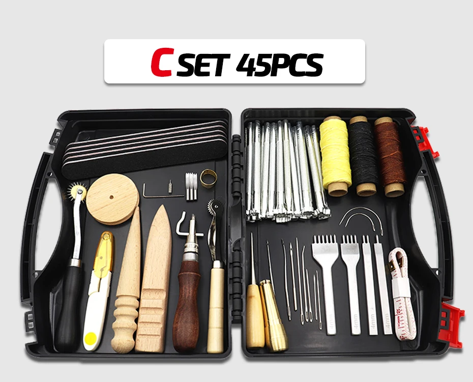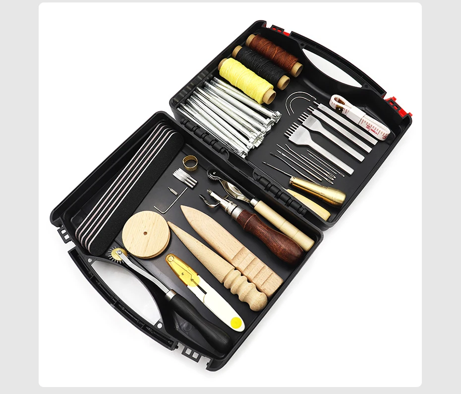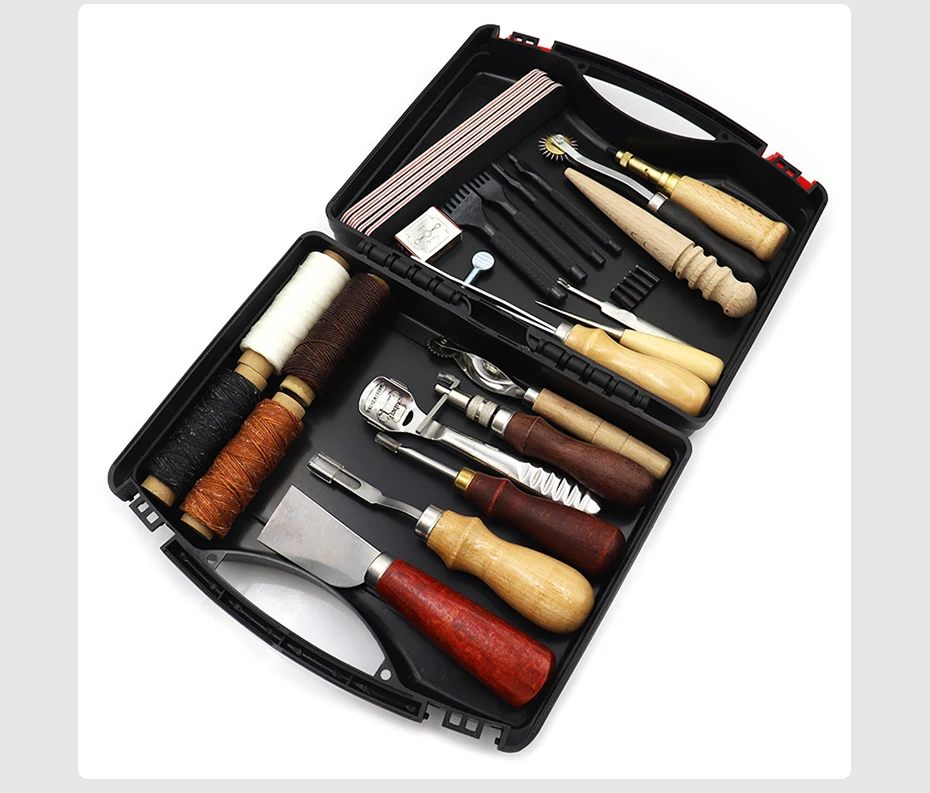 Great tools, unfortunatelly there is no leather cutter, the mist important tool..