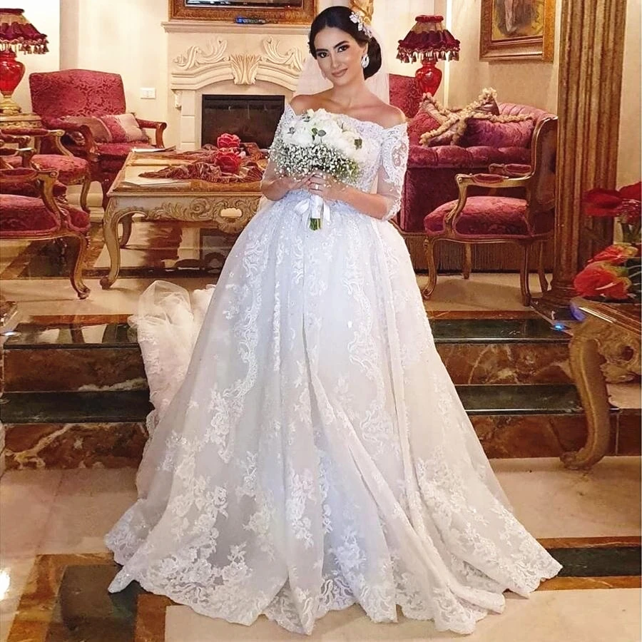 Блестящие пайетки, кружевные свадебные платья, с открытыми плечами, с длинным рукавом, королевская принцесса, дизайн А-силуэта, свадебные платья, vestido de noiva