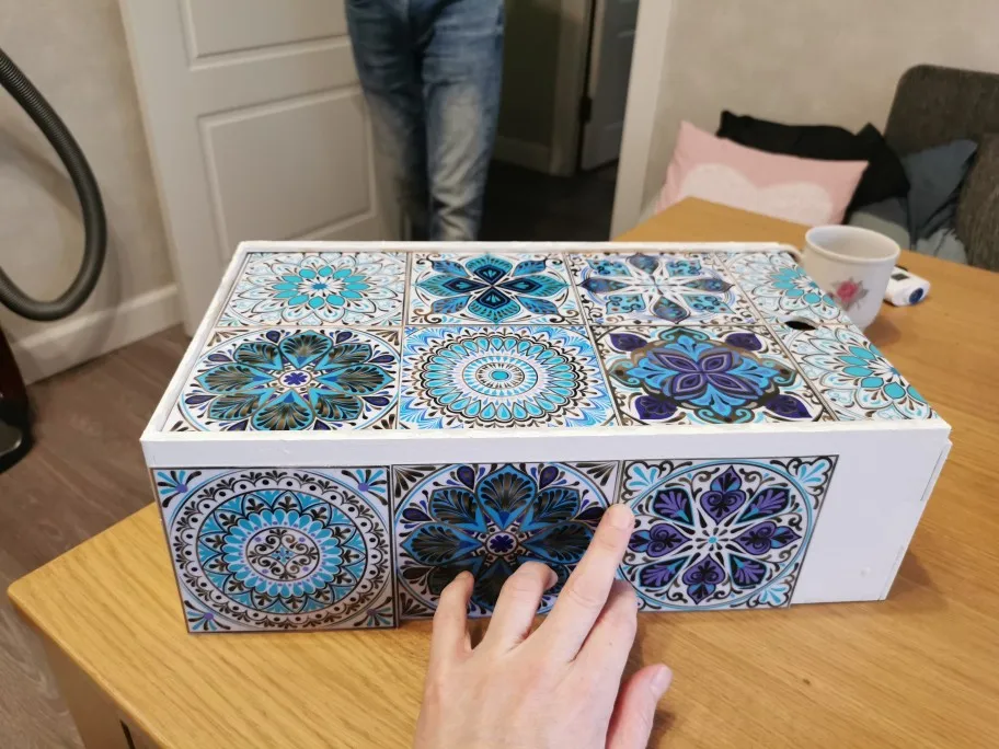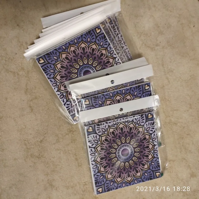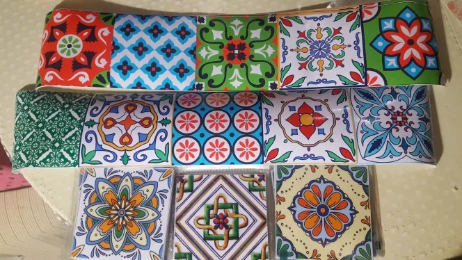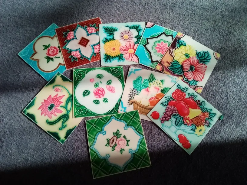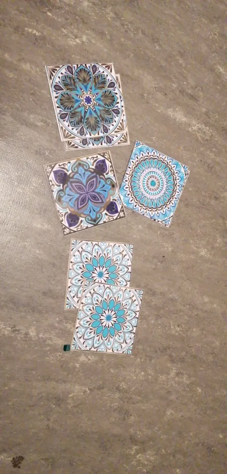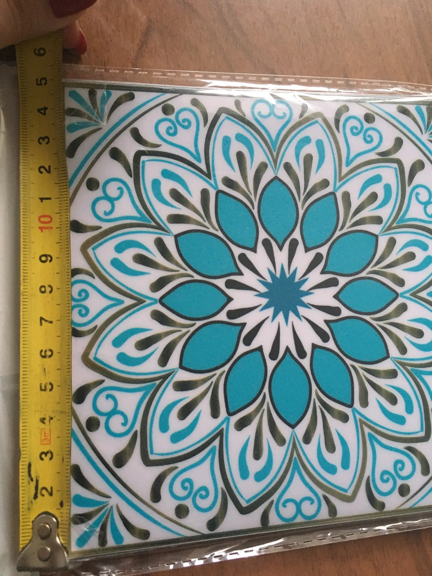 Шикарные наклейки! Я даже не ожидала. Пришли в пакетике поштучно нарезанные 10 штук. Глянцевые, плотные, сверху защитная пленочка, чтобы не было царапин на глянце. Смотрится очень классно, как будто настоящий кафель, будет офигенно смотреться на столешнице стола. Можно украсить такими наклейками столешницу икеевского журнального стола "Лакк". Я купила на пробу, чтобы обклеить деревянную коробку и сделать из неё шкатулку. Мне не хватило 10 штук, закажу ещё. Правда есть сильный запах ПВХ, но, уверена он быстро выветрится.