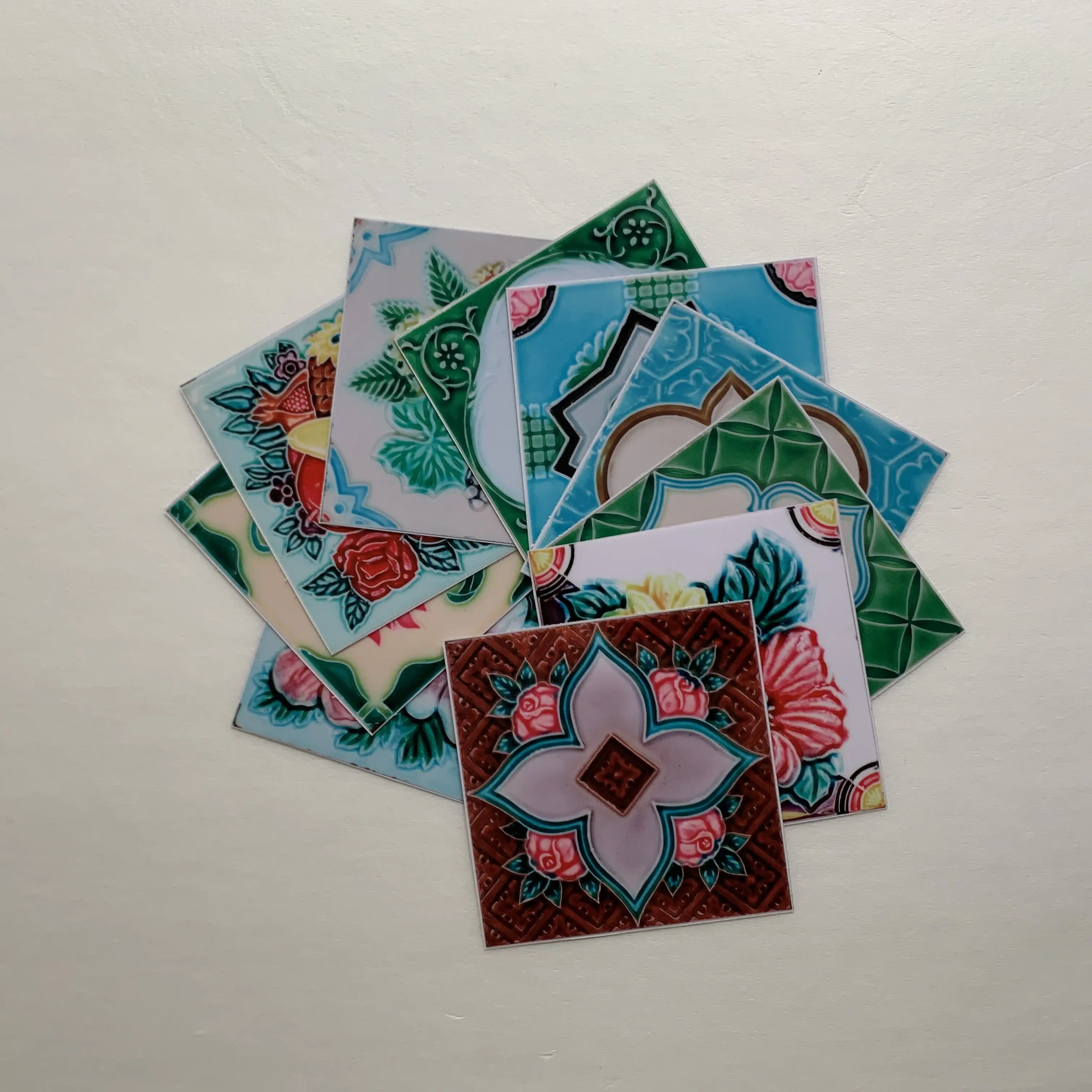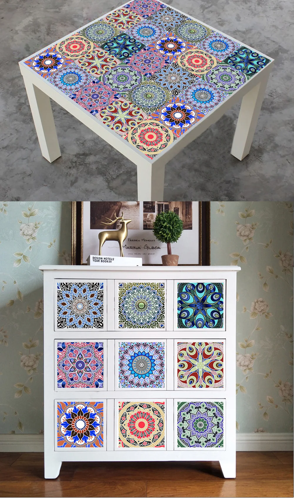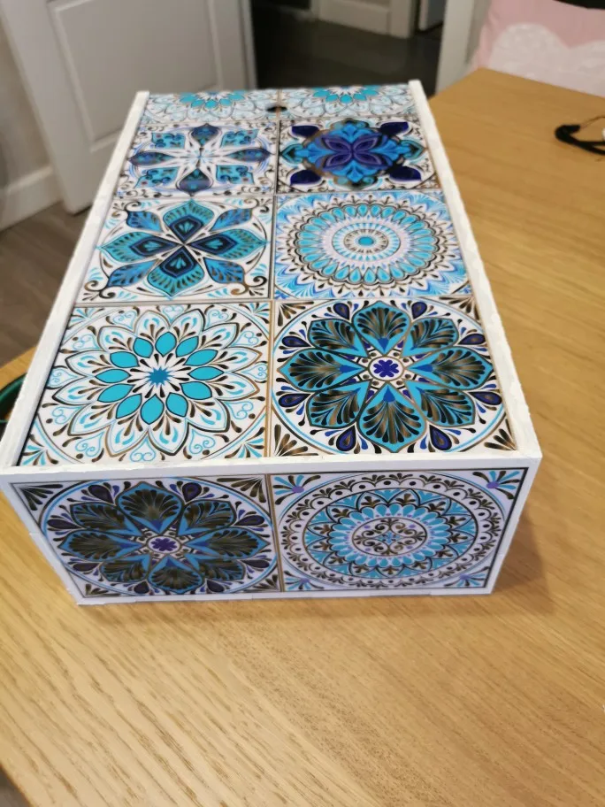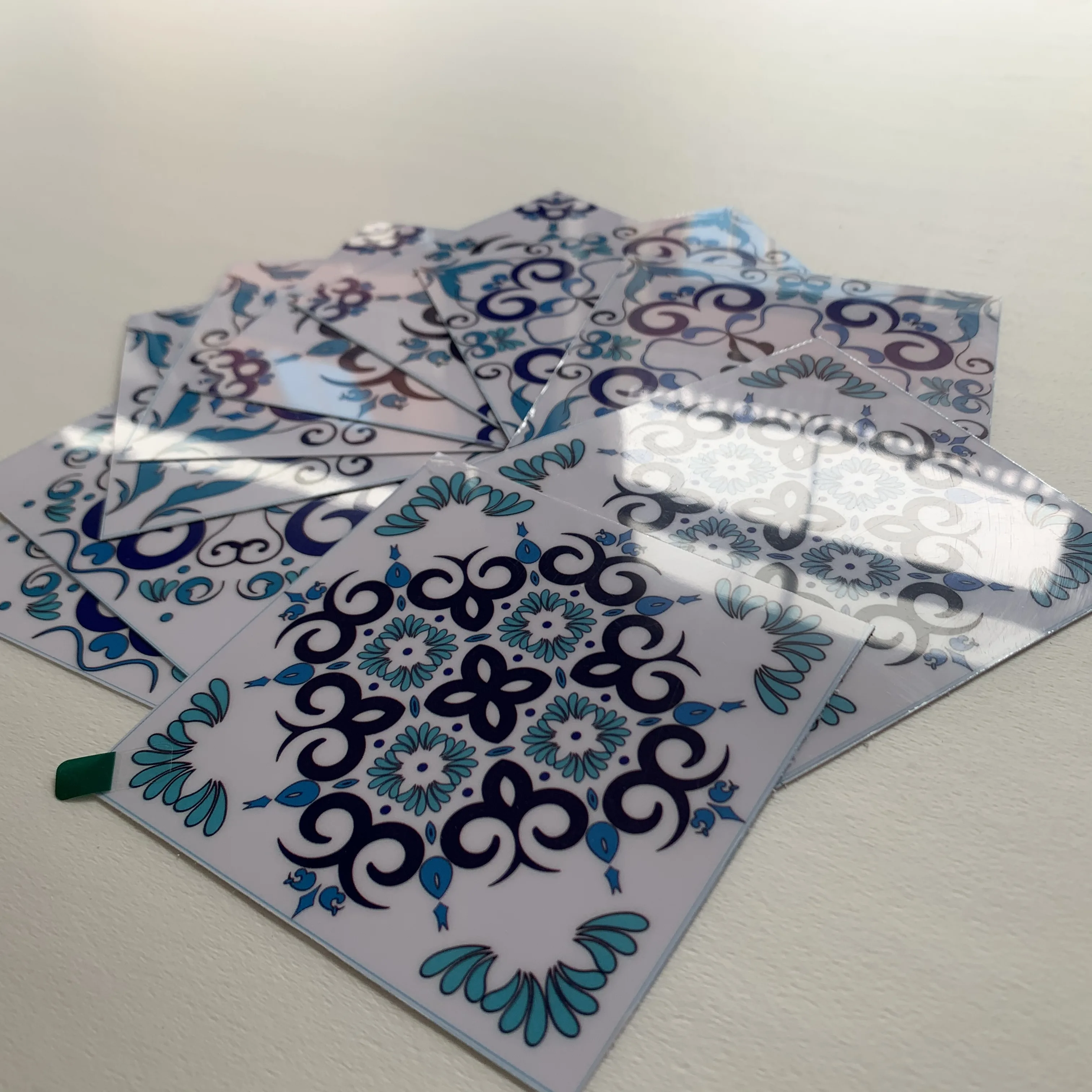 Шикарные наклейки! Я даже не ожидала. Пришли в пакетике поштучно нарезанные 10 штук. Глянцевые, плотные, сверху защитная пленочка, чтобы не было царапин на глянце. Смотрится очень классно, как будто настоящий кафель, будет офигенно смотреться на столешнице стола. Можно украсить такими наклейками столешницу икеевского журнального стола "Лакк". Я купила на пробу, чтобы обклеить деревянную коробку и сделать из неё шкатулку. Мне не хватило 10 штук, закажу ещё. Правда есть сильный запах ПВХ, но, уверена он быстро выветрится.