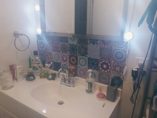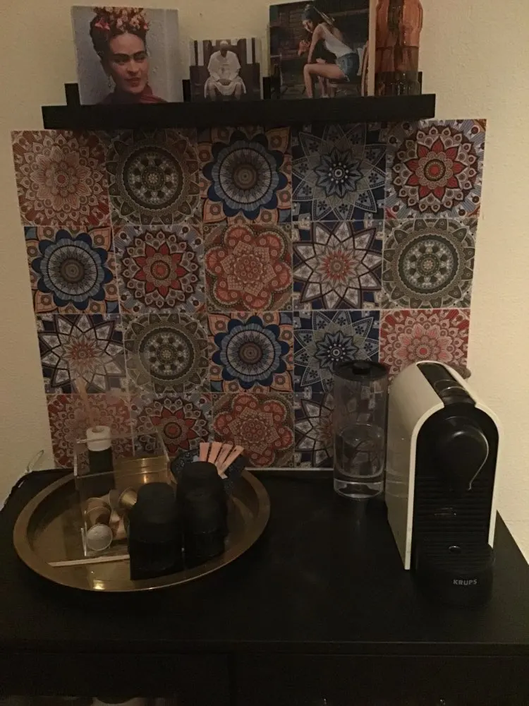 Очень рад, получил его в течение 2 недель (Франция), действительно легко установить или даже перемещать и повторно приклеить его, если вам нужно. Очень хорошо держится, и цвета хорошие. Придайте цвет маленькой кухне.