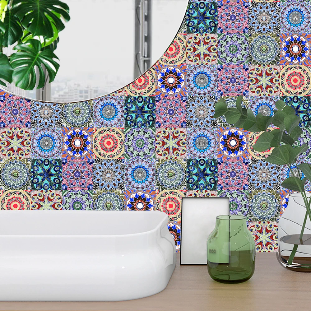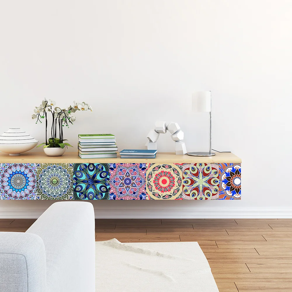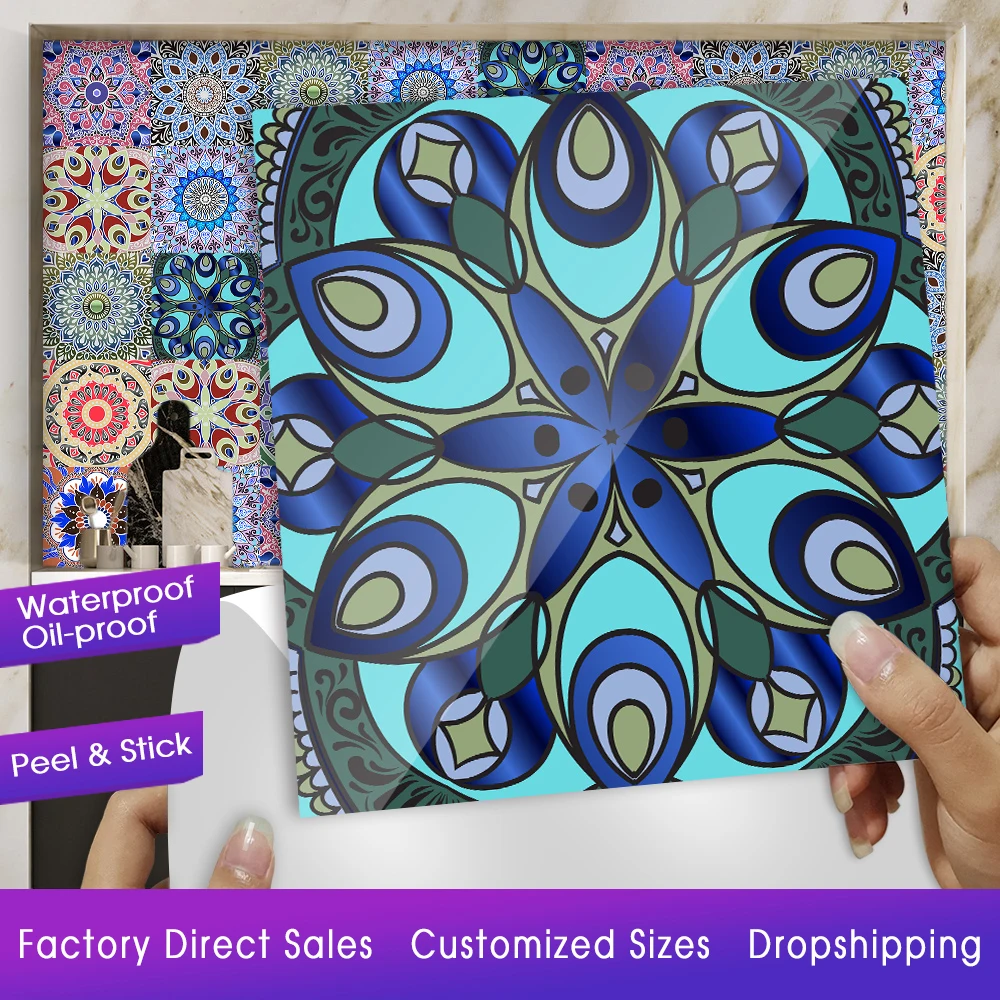 Наклейки на стену, 10 шт.компл., разноцветные, с изображением мандалы, хрустальные, твердые, для пола, кухни, ремонта дома, искусства, съемные настенные наклейки