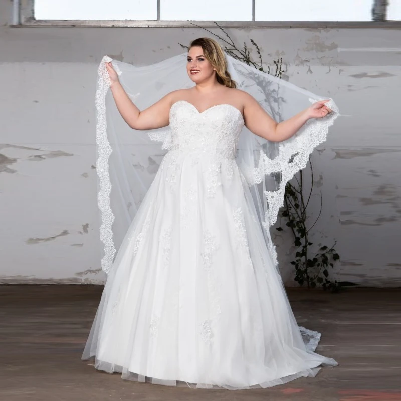 Женское свадебное платье с вырезом сердечком, элегантный трапециевидный корсет со шлейфом и аппликацией, платье невесты