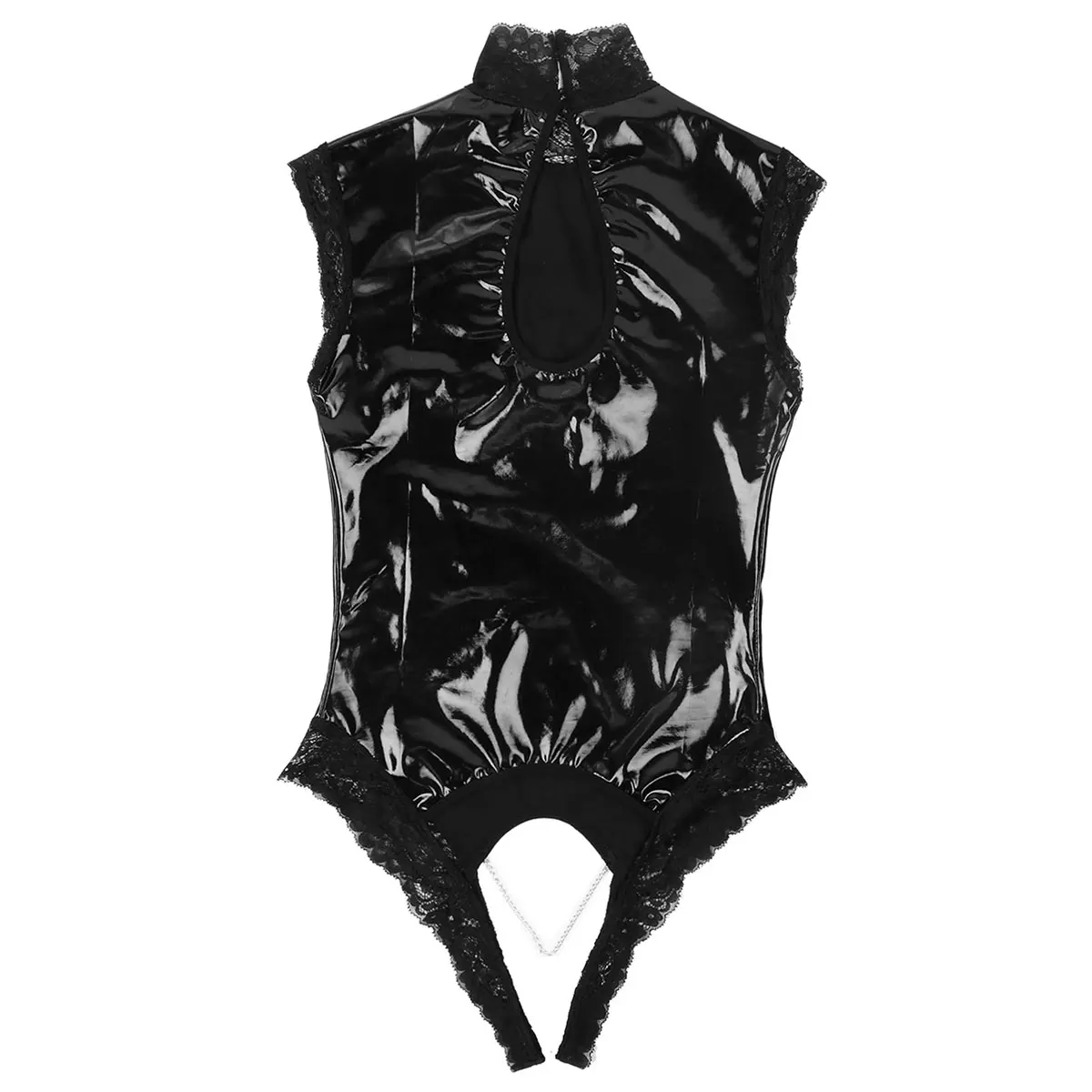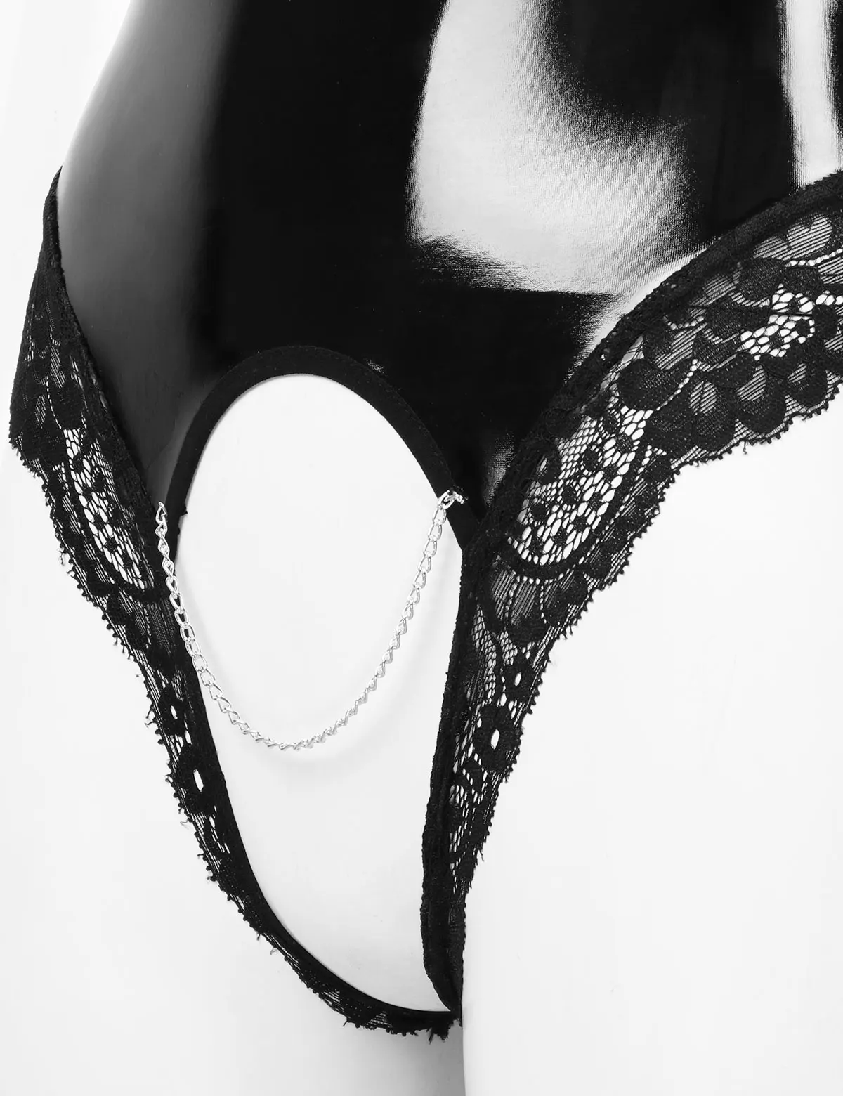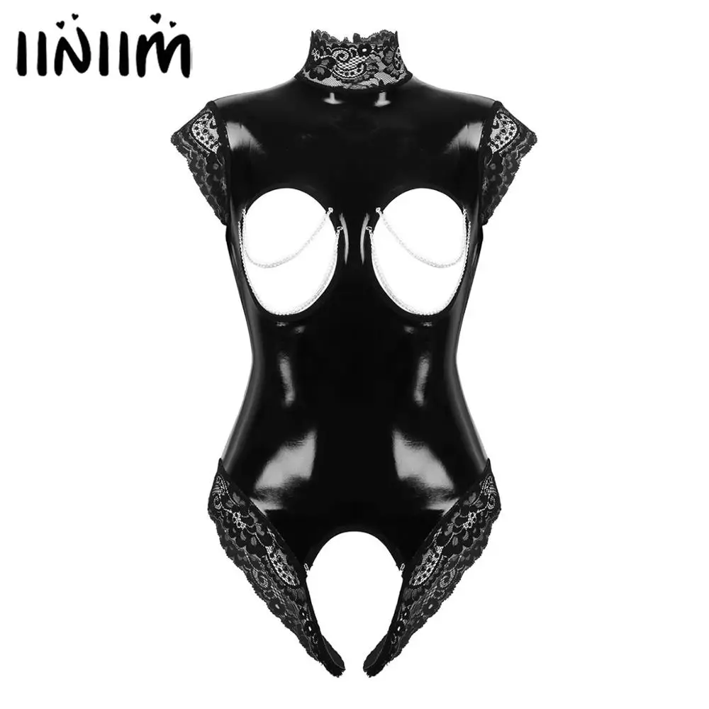 Боди женское кружевное, с вырезом на соски, с открытой чашкой, женское белье из лакированной кожи