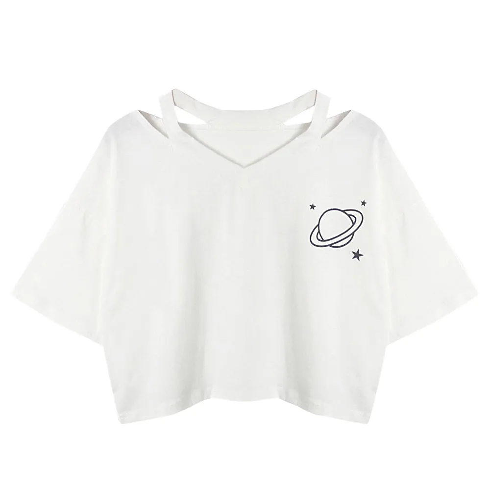 Для женщин Повседневная футболка с короткими рукавами и цветочным принтом с открытыми плечами; Топы; Блузка