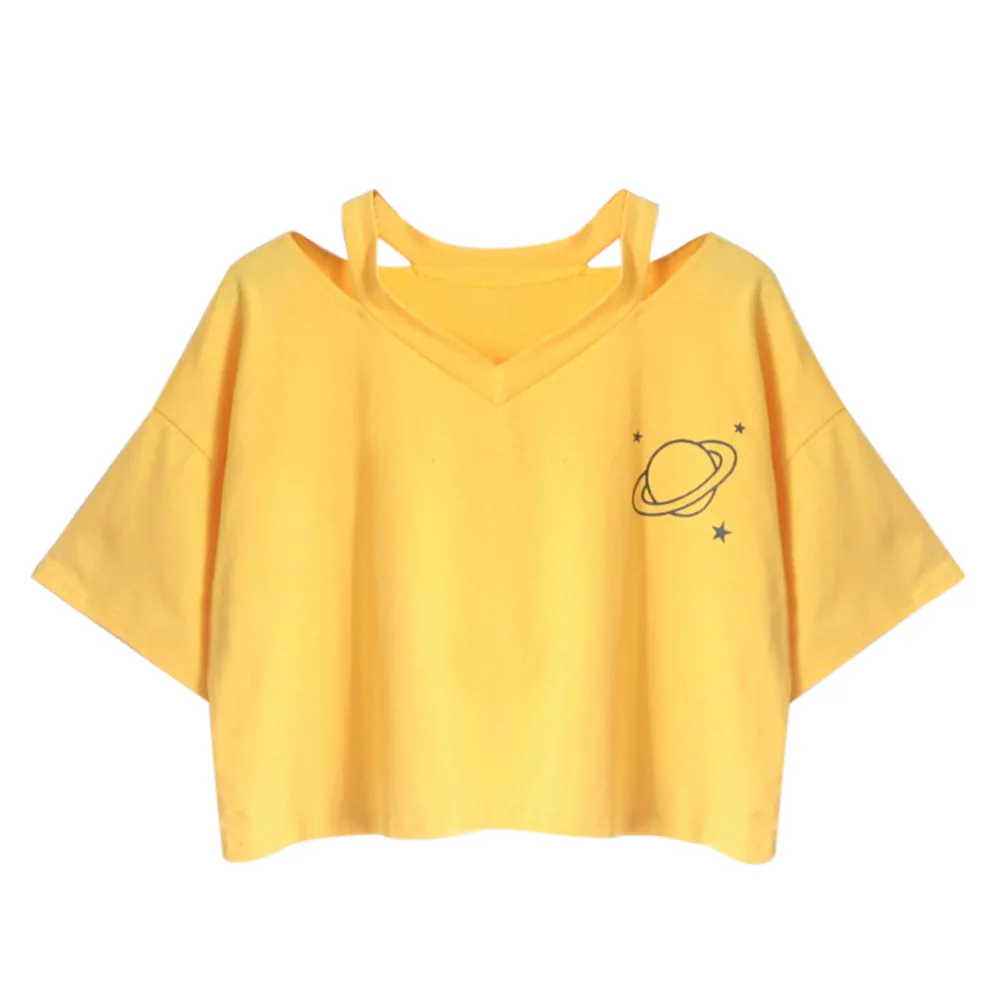 Женская футболка с V-образным вырезом, желтая, белая, черная, Готическая