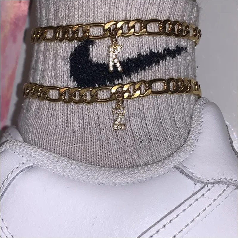 Крошечный A-Z Начальная буква ножные браслеты для женщин из нержавеющей стали золотой алфавит кубинской анклет (браслет на ногу браслет Бохо ювелирные изделия подарок на Хэллоуин
