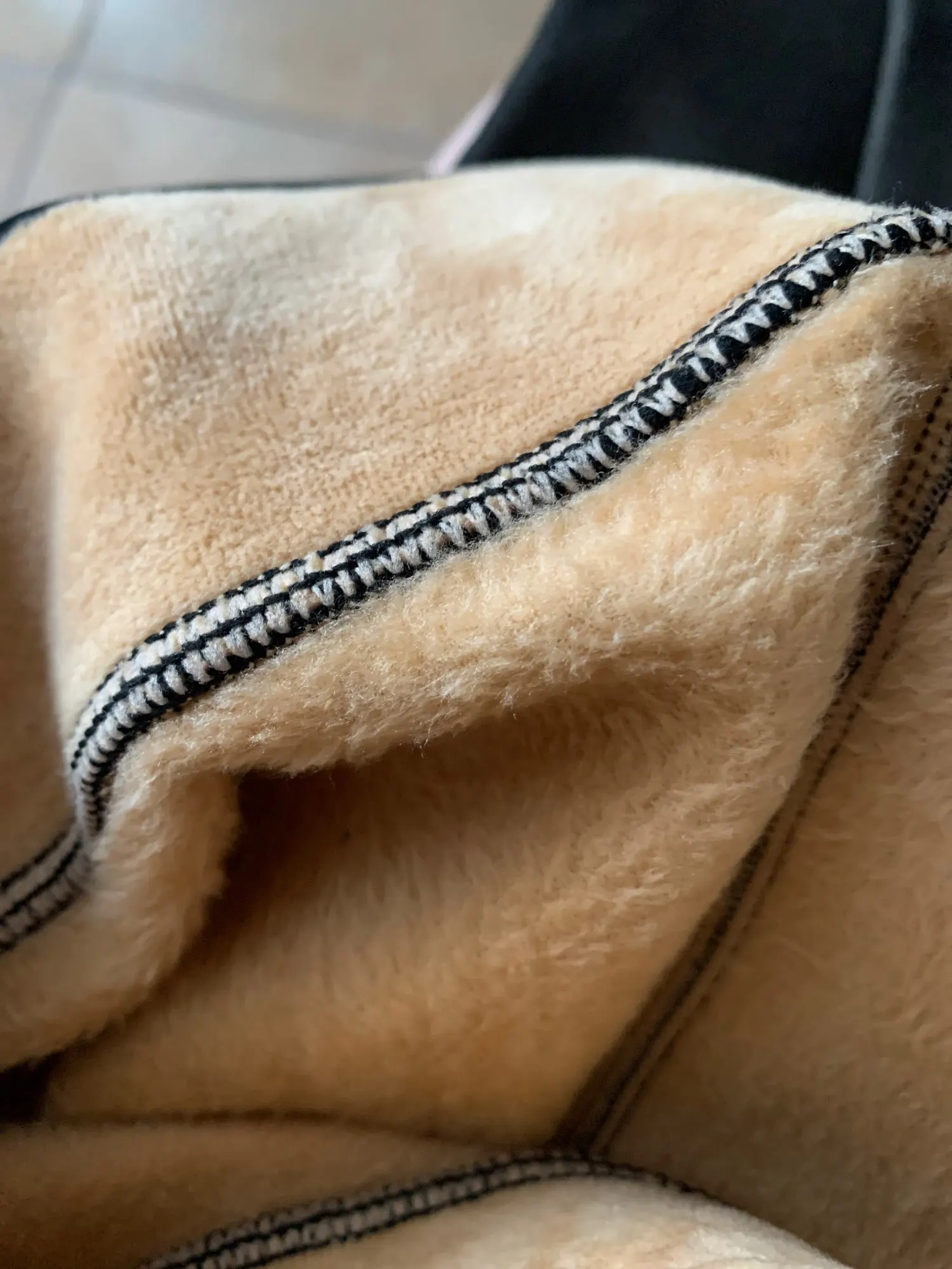 Сели хорошо (мой рост 169, бедра не самые узкие). Думала, внутри что-то типа искусственного меха, но там скорее футер наподобие изнаночной стороны мягких и тёплых толстовок. Тоже хорошо и мягко, приятно! Можно и с кроссовками носить, разве что топорщиться немного будет спереди (на фото видно). В целом я довольна. Зима близко! )
