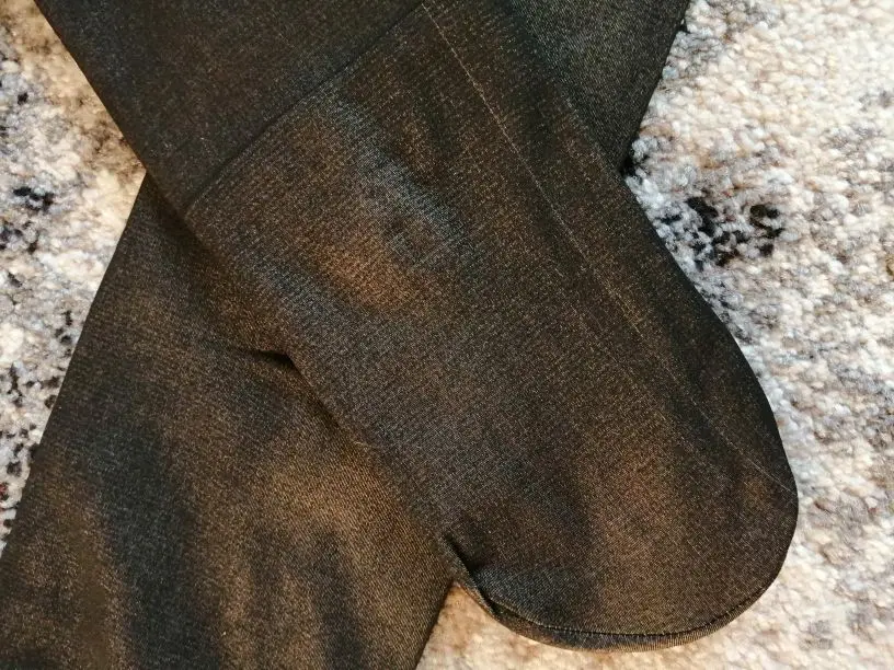 на рост 158см немного длинные, но особо не борят. Толщина на сгибе видна. также виден переход от теплого верха к абсолютно капроновому носочку