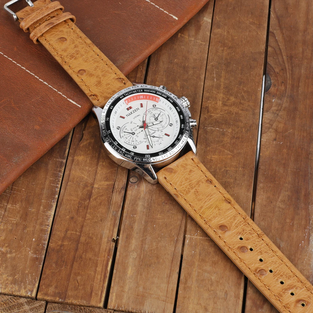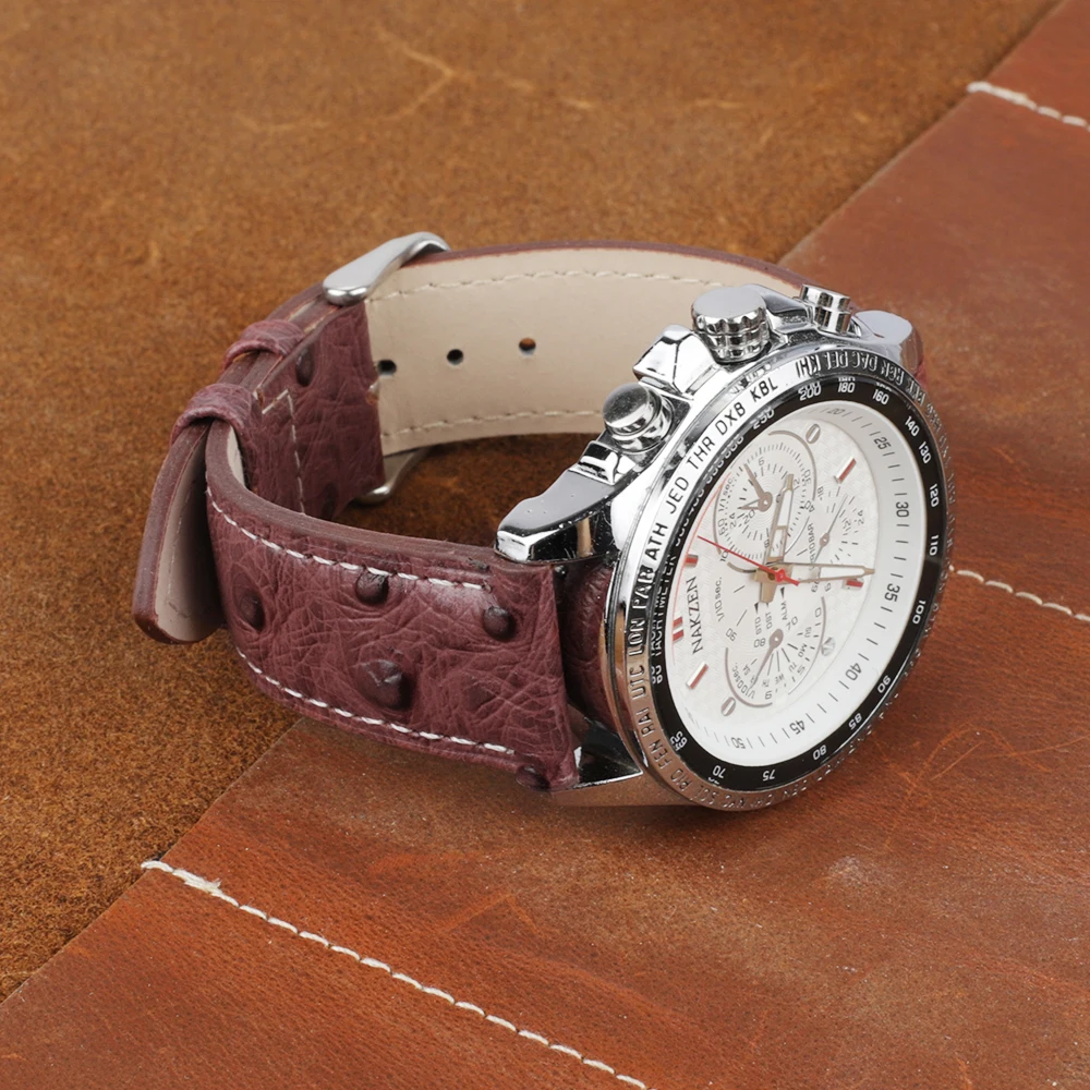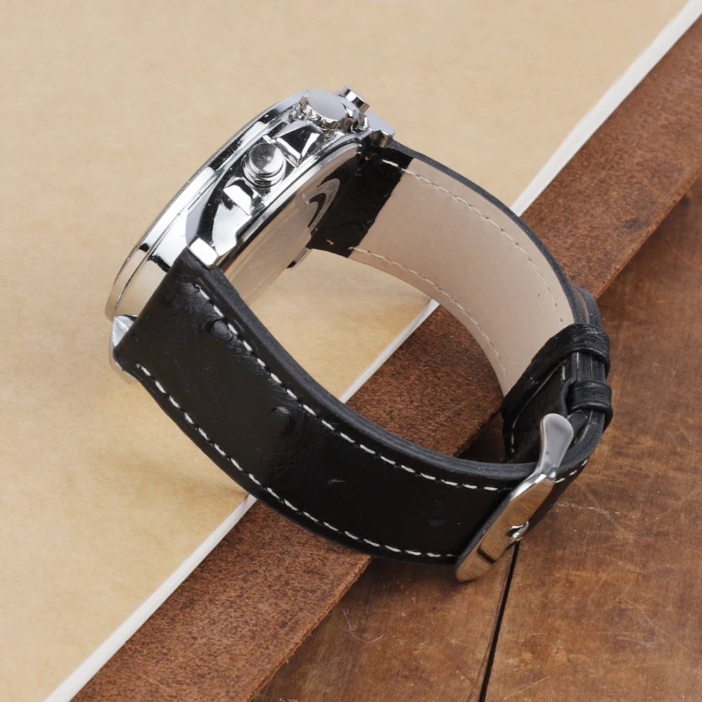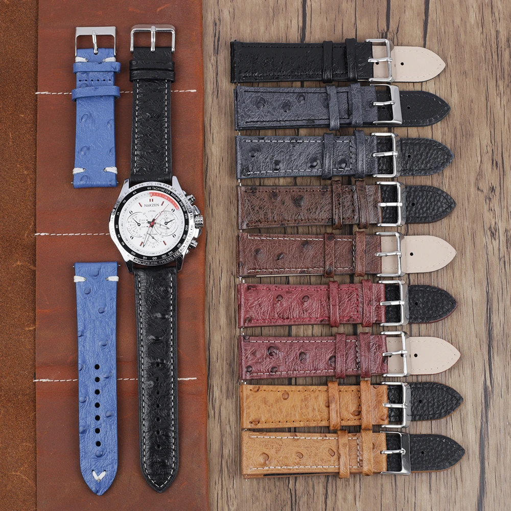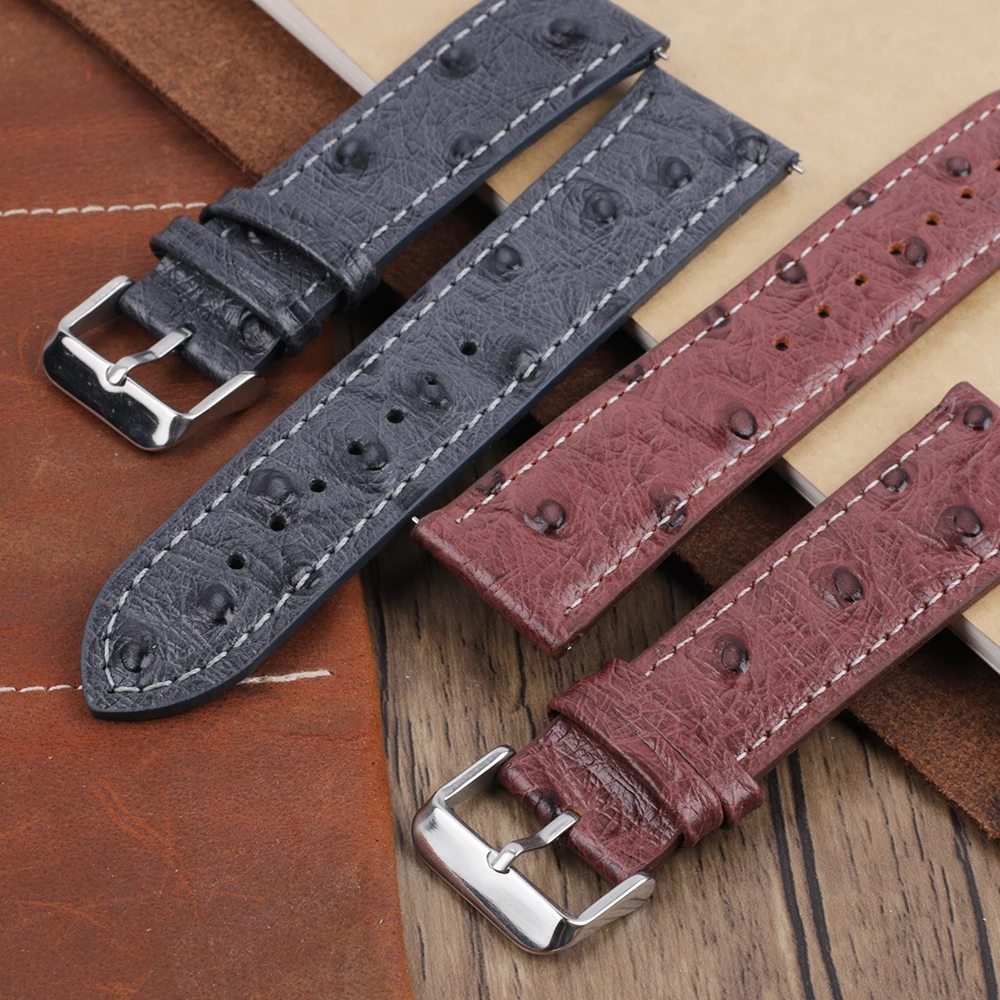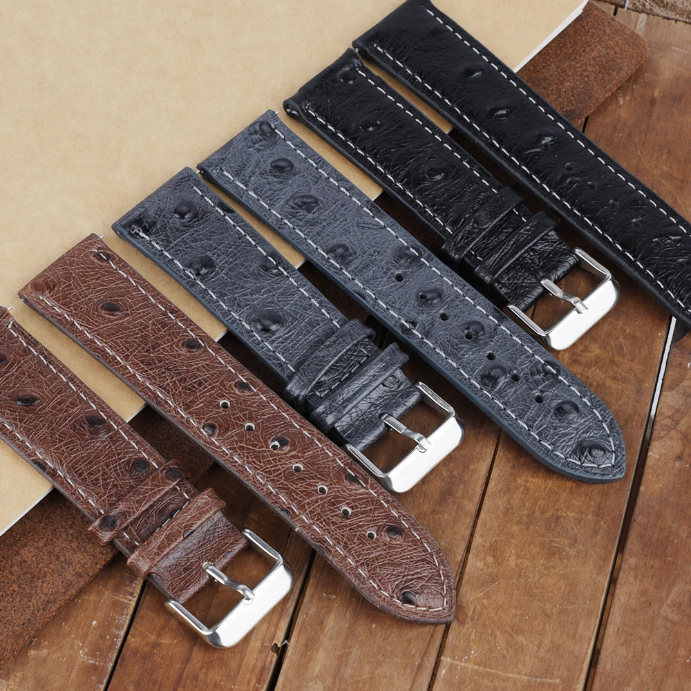 Ремешок кожаный для часов, винтажный черный браслет со страусиным узором для часов, 18 мм 20 мм 22 мм 24 мм