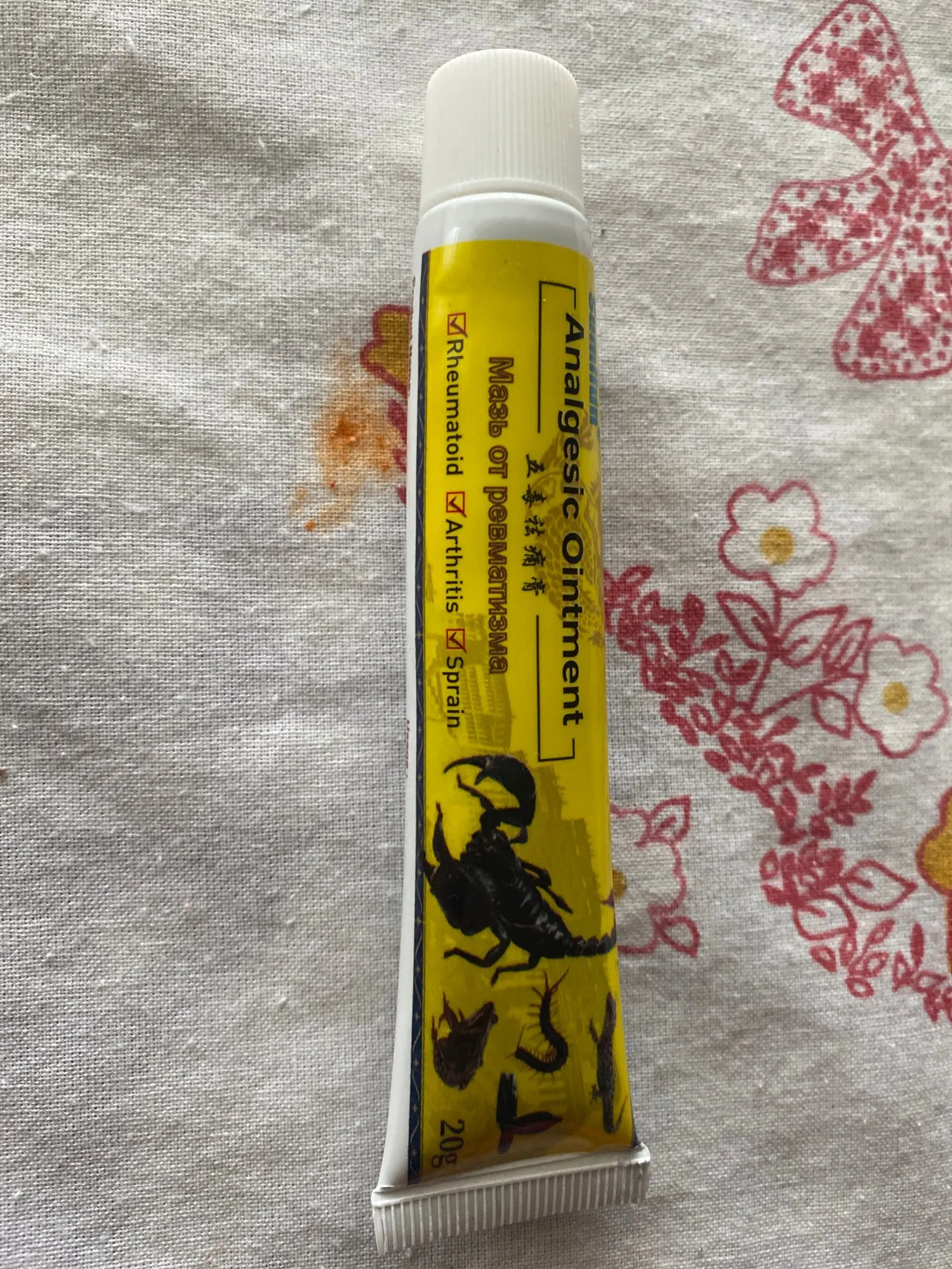 Именно такую мазь с ядом скорпиона получил впервые до этого у разных продавцов на Али заказывал мазь со скорпионом, на меня действовало очень эффективно. Покупки здесь бальзамов и мазей всегда для меня были успешными. Препараты со скорпионом-отличный анальгетик практически от всего!