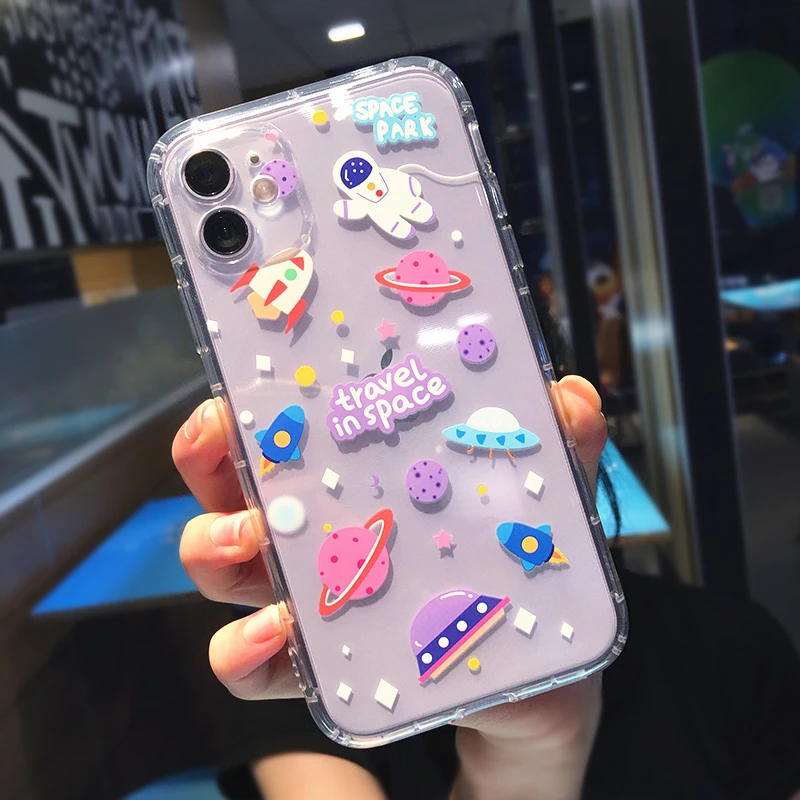 Милый мультяшный чехол для телефона с космосом астронавтом планетой для iPhone 13 Pro MAX 12 11 X XS XR 7 8 Plus SE, прозрачный мягкий противоударный чехол