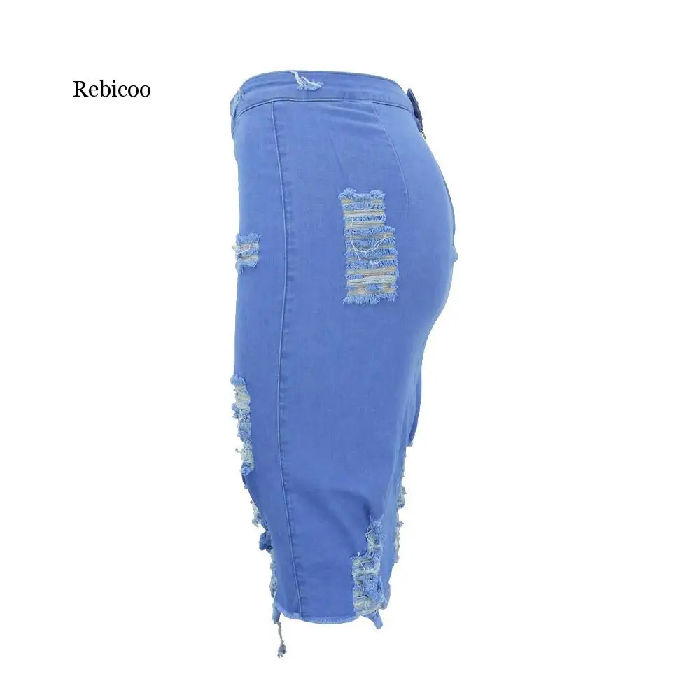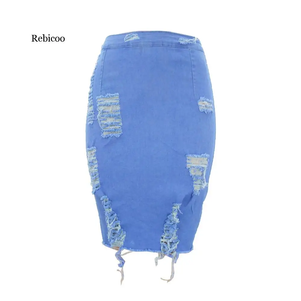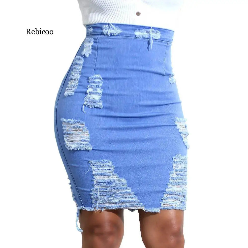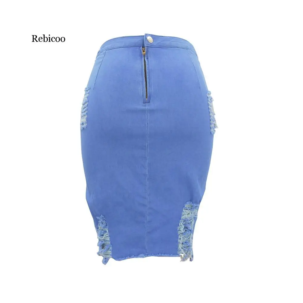 Женская рваная джинсовая юбка, голубая облегающая юбка-карандаш с завышенной талией, размера плюс, повседневная, джинсовая мини-юбка