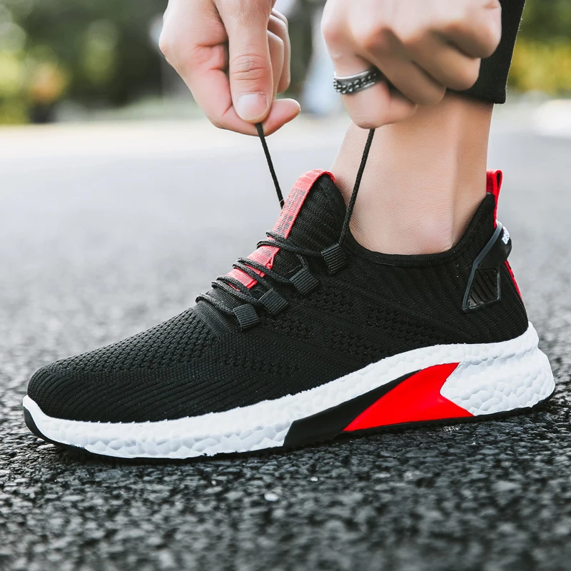 Baideng плетеная спортивная обувь для мужчин 2019 дышащая сетчатая Спортивная обувь Мужская черная красная Беговая прогулочная обувь Baskets Homme USD 16,99-18,99/Пара