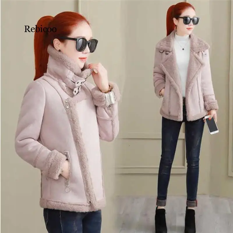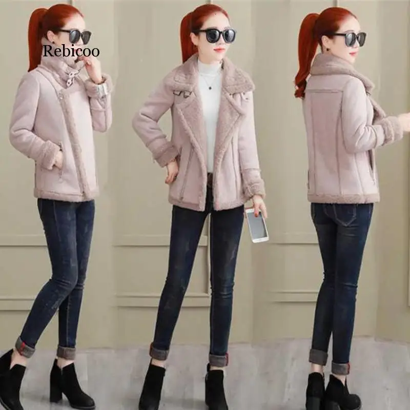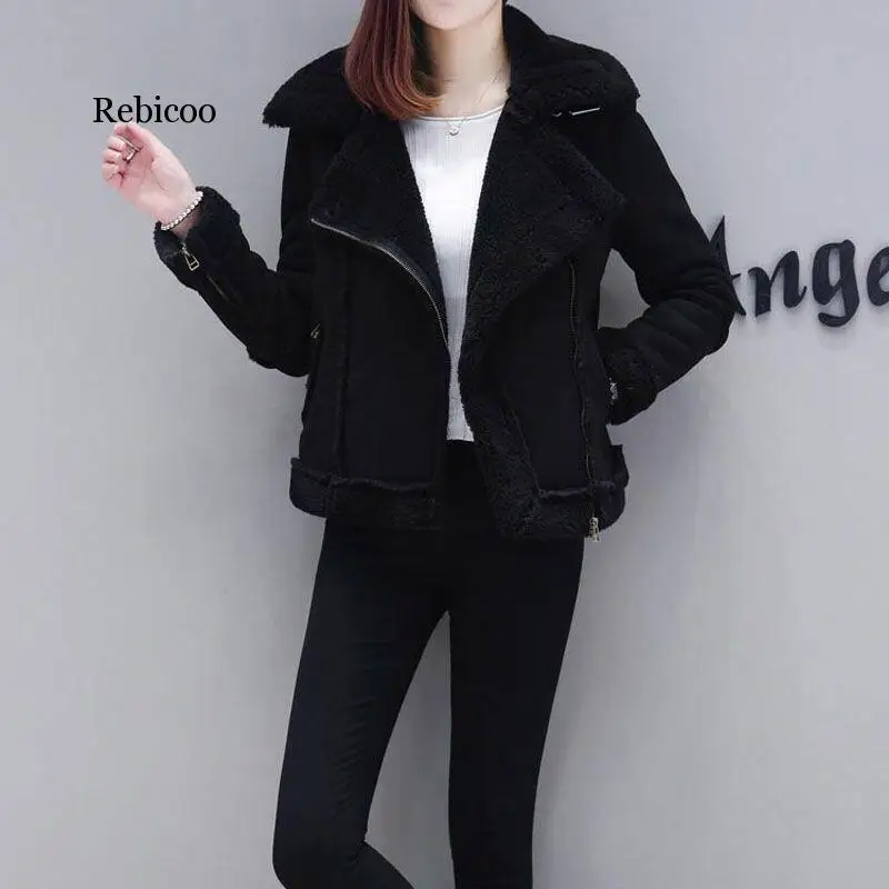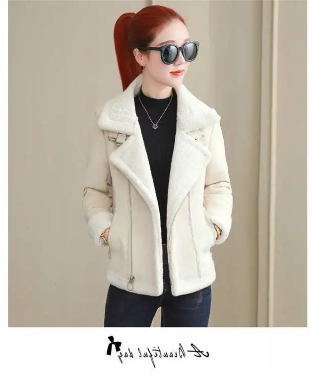 Зимняя короткая замшевая куртка из искусственной кожи, Женская куртка большого размера коричневого, белого цвета, Байкерская замшевая куртка, верхняя одежда, пальто