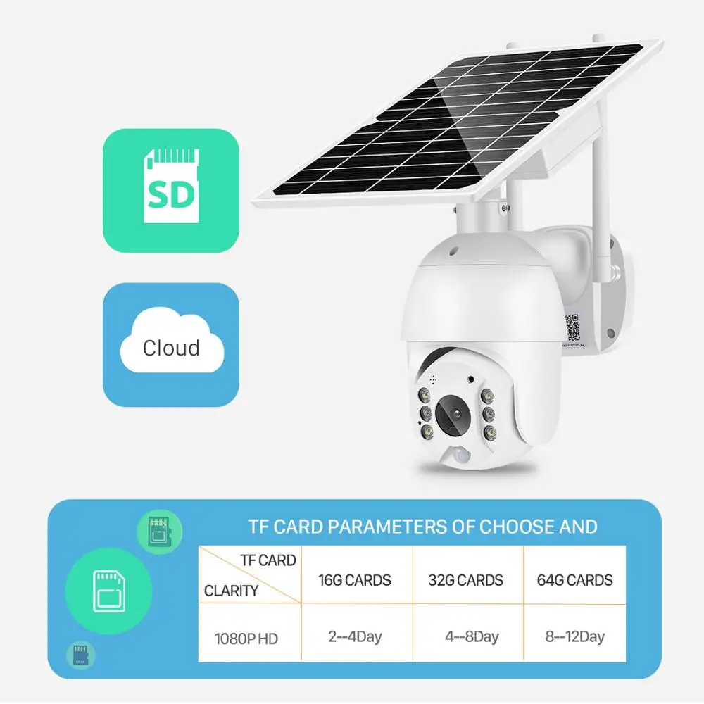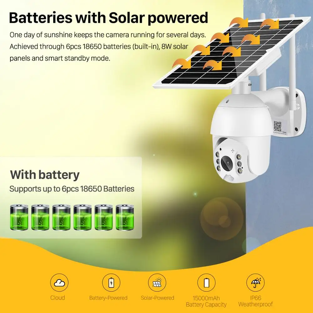 В один солнечный день камера работает несколько дней.Достигается за счет 6 батарей 18650 (встроенный), 8 Вт солнечных панелей и смарт-режим ожидания
