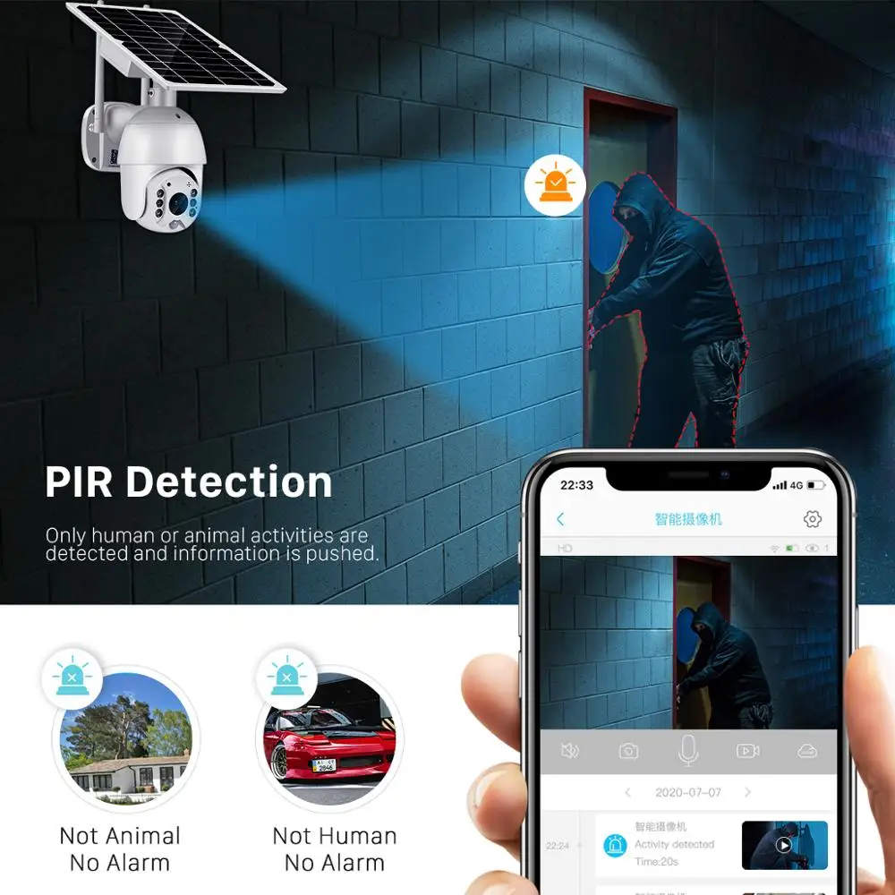 Поддержка обнаружения RIP, только когда камера обнаруживает движение гуманоида или животного, она будет автоматически записывать его.В спящем режиме в другое время для достижения умной экономии энергии, он не поддерживает непрерывную запись 24 часов