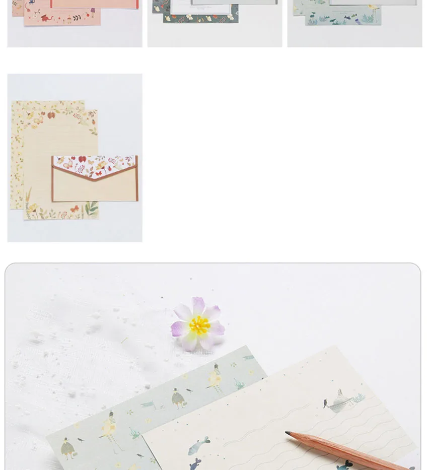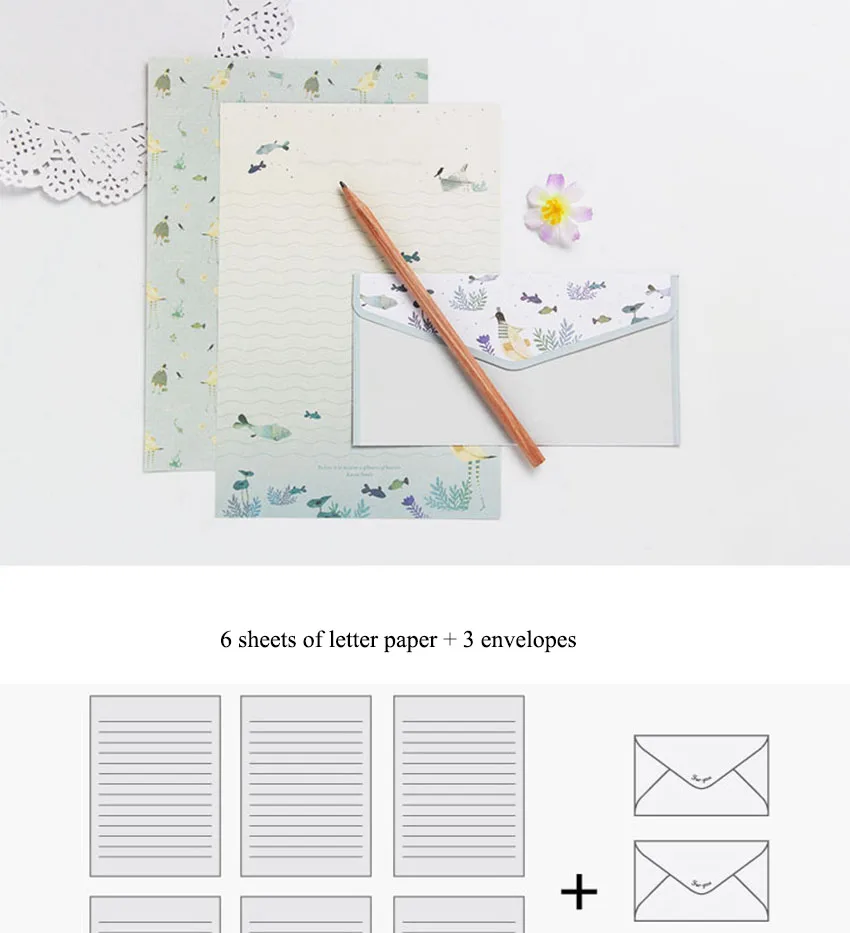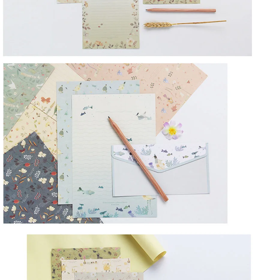 6 листов бумаги с буквами + 3 шт. конвертов, Креативный цветочный узор, буква А5, симпатичный набор бумажных конвертов с буквами для офиса и школы