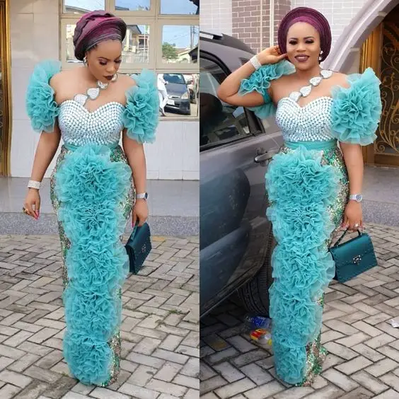 Aso Ebi телефон ярко-синего цвета длиной до пола со шлейфом, полная...