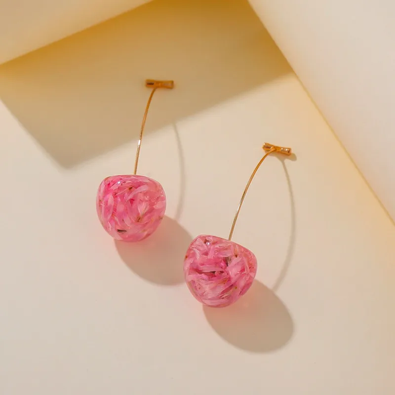 Женские длинные серьги в виде вишенок, акриловые серьги розового цвета, 2020