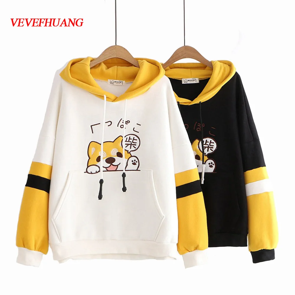 Зимние женские толстовки в японском стиле Харадзюку с рисунком живо...