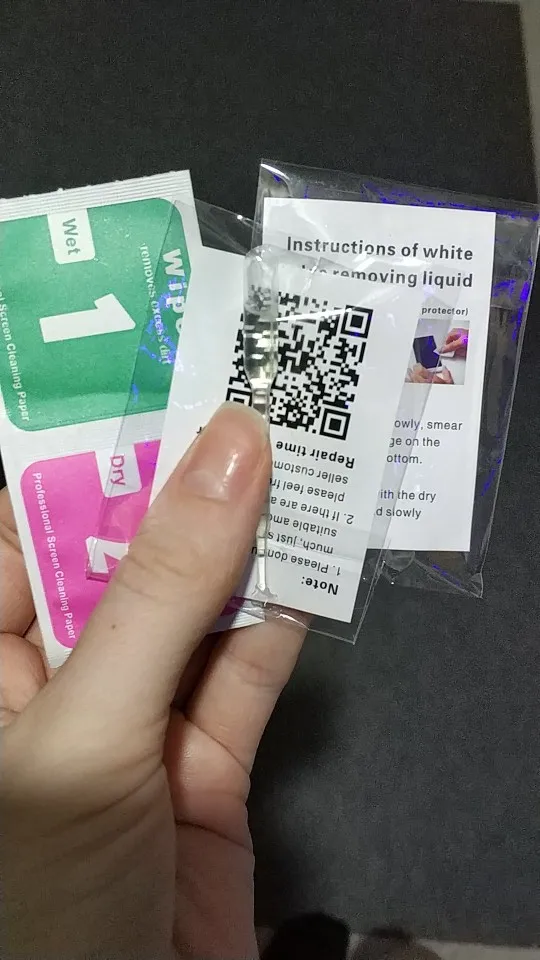 Стекло плоское (не 3D). Размер стекла существенно меньше размера экрана, примерно по миллиметру слева и справа остаётся незакрытым, что сильно портит внешний вид. При наклейке стекла остаются воздушные полости по краям. Для их заполнения (чтобы не было светлых "пузырей" в комплекте прилагается пипетка со специальной жидкостью. При попадании на стекло, эта жидкость делает это стекло матовым, удалить плёнку жидкости не так просто. Вода не берёт её, спирт тоже.