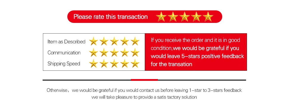 Мы хотели бы заработать все5 звезд положительные отзывы.Ваш комментарий очень важен для нас. Пожалуйста, не открывайте нам спор.