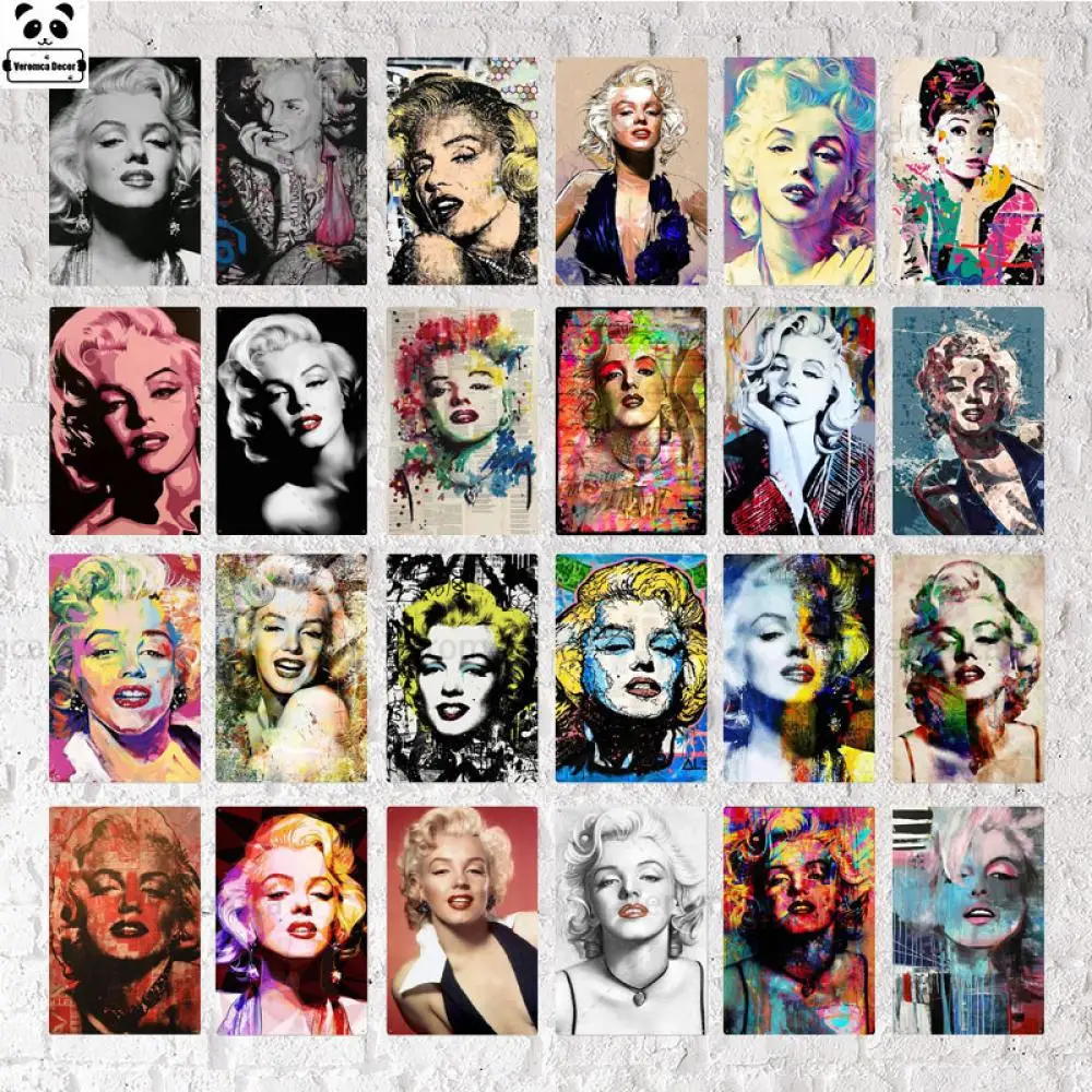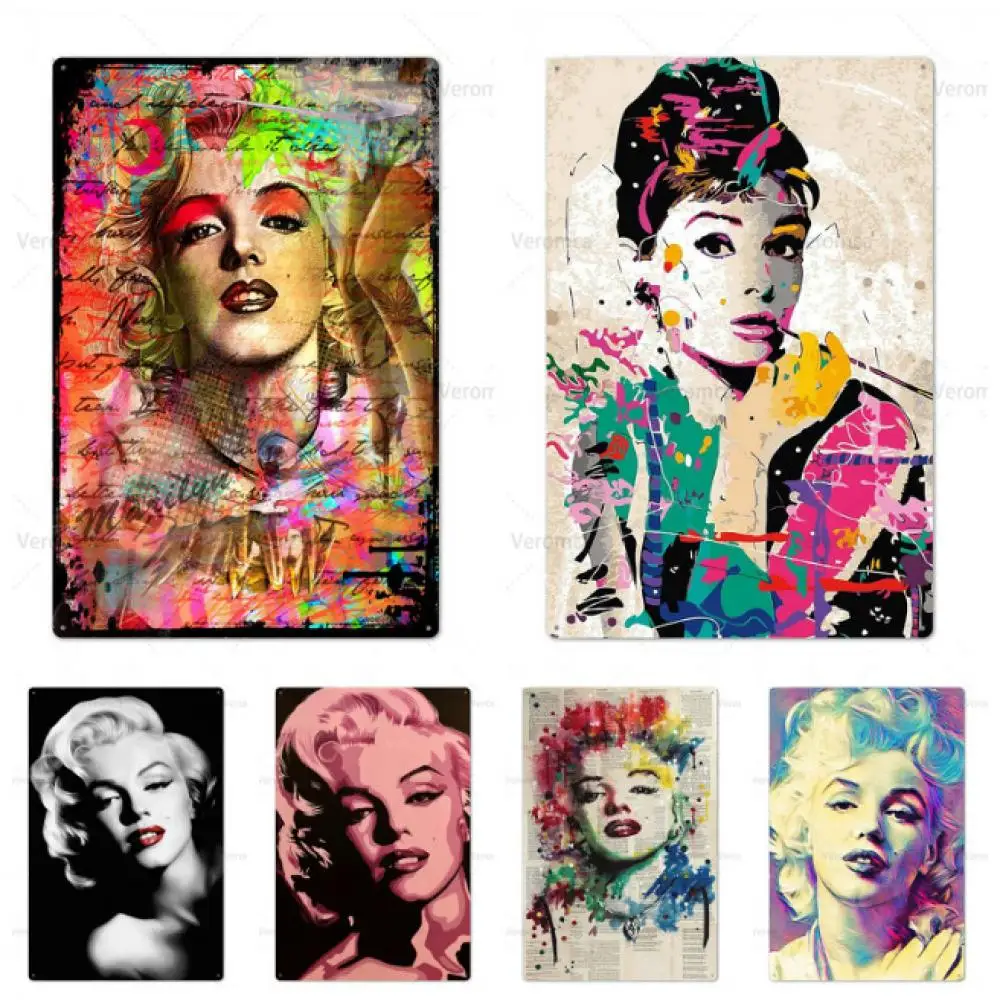 Мэрилин Монро и Одри Хепберн искусственная металлическая настенная декорация, мужская пещера, металлические знаки для гостиной