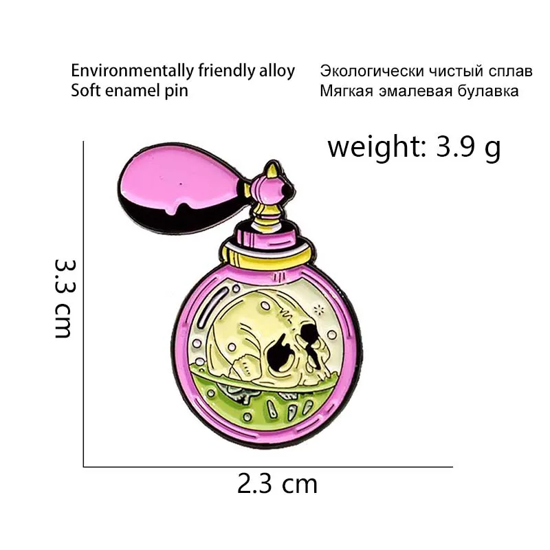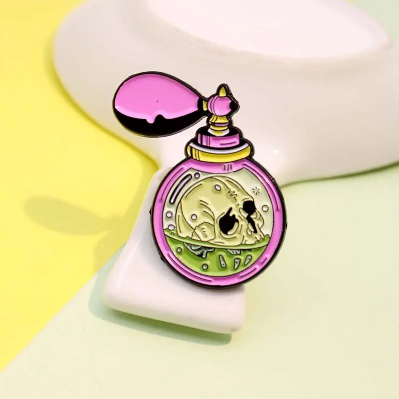 Эмалированная брошь в стиле ретро, с розовым черепом, духами, ядовитой, креативной булавкой на лацкан, шляпу, куртку, сумку, модный значок, ювелирное изделие, подарки для женщин