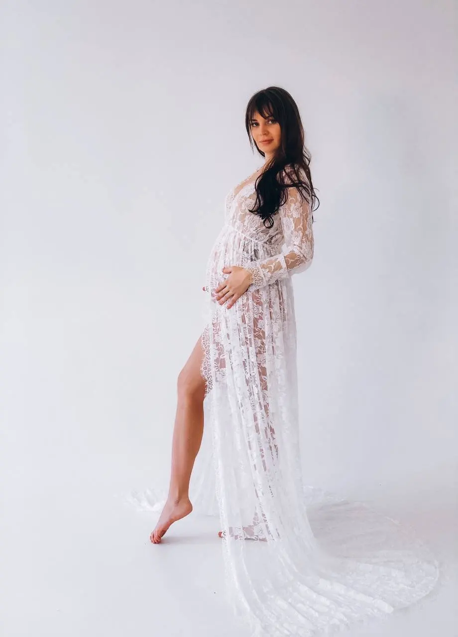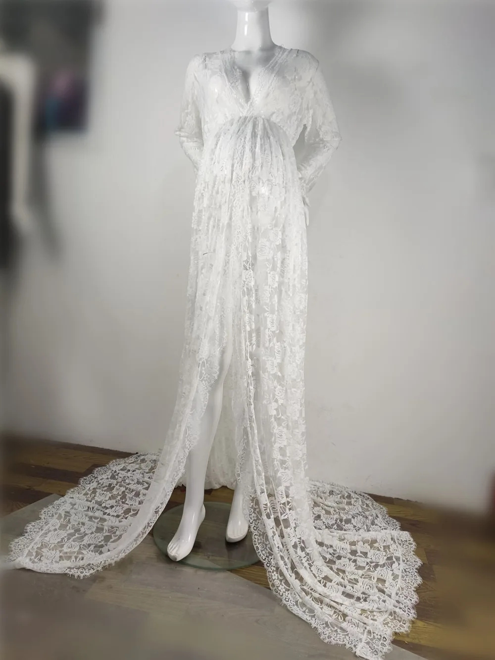Белое сексуальное кружевное платье для беременных, длинное платье для фотосессии, платье макси для беременных