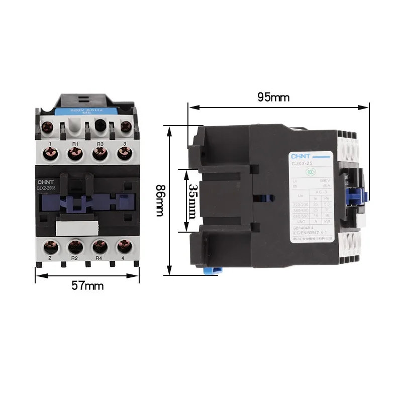 Промышленный электрический контактор CHINT CJX2-2508 2NO 2NC 25A 220 В