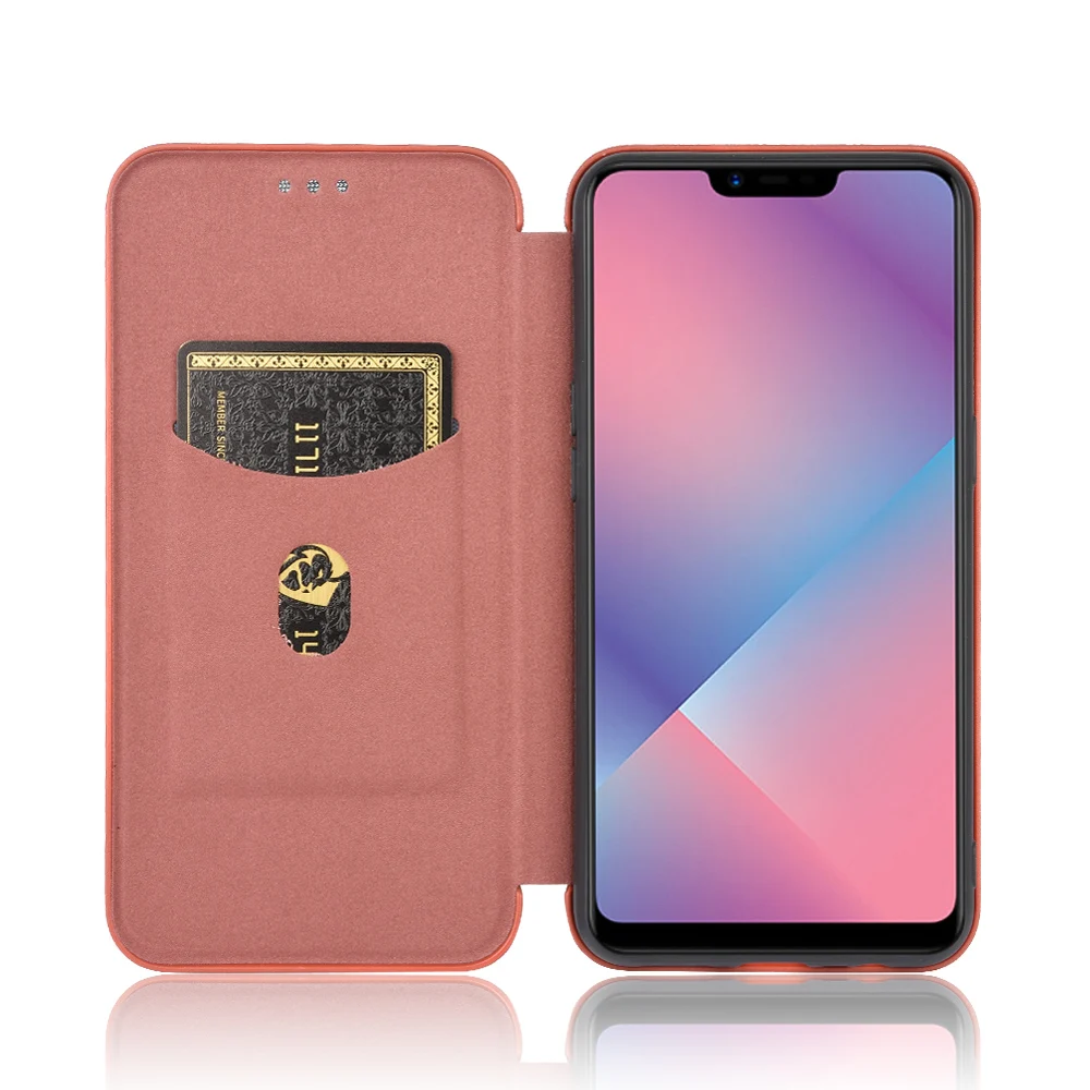 OPPO A3s чехол 6,2 дюймов углеродного волокна Флип кожаный чехол OPPO A3s CPH1803 деловой с магнитной застежкой и отделением для карт тонкий Чехол