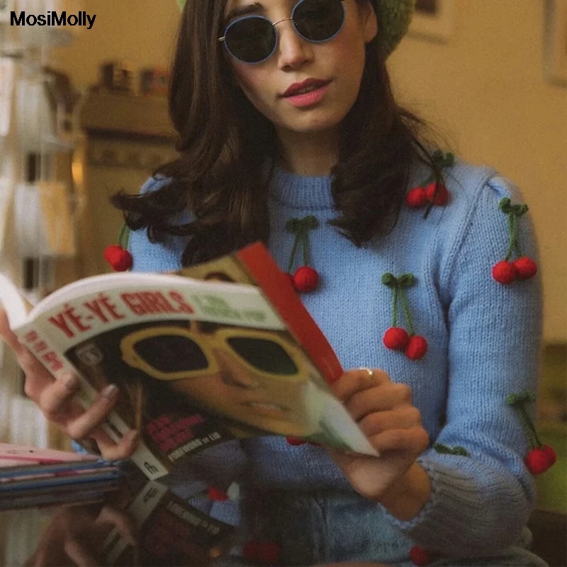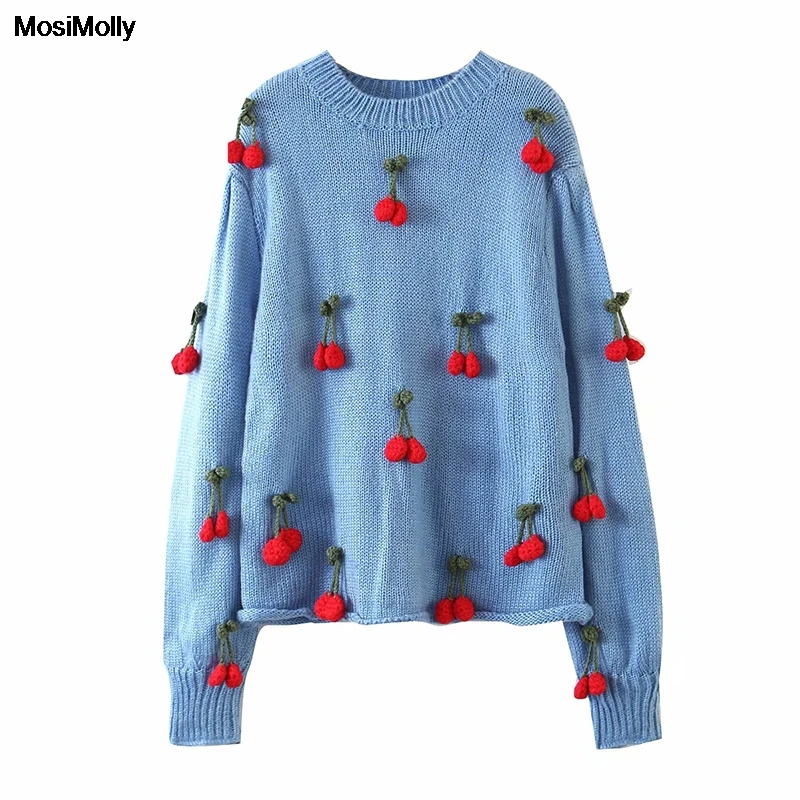 Свитер женский MosiMolly, трикотажный, вишневый, пуловер с круглым вырезом, вязаный, Осень-зима 2020