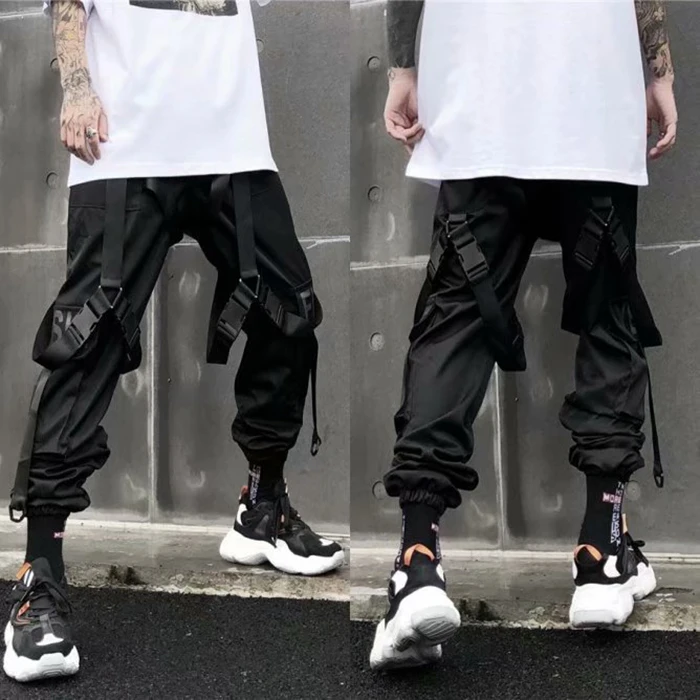 Джоггеры мужские в стиле хип-хоп, брюки-карго с лентами и надписями...
