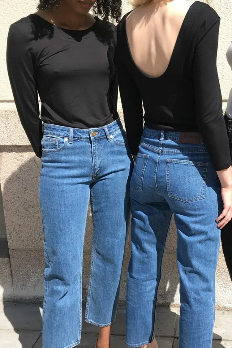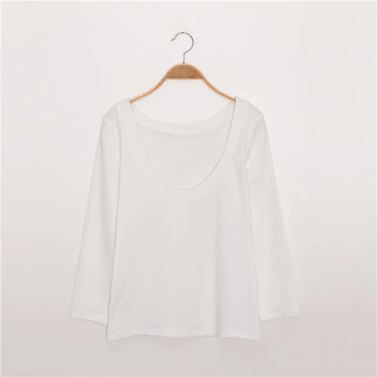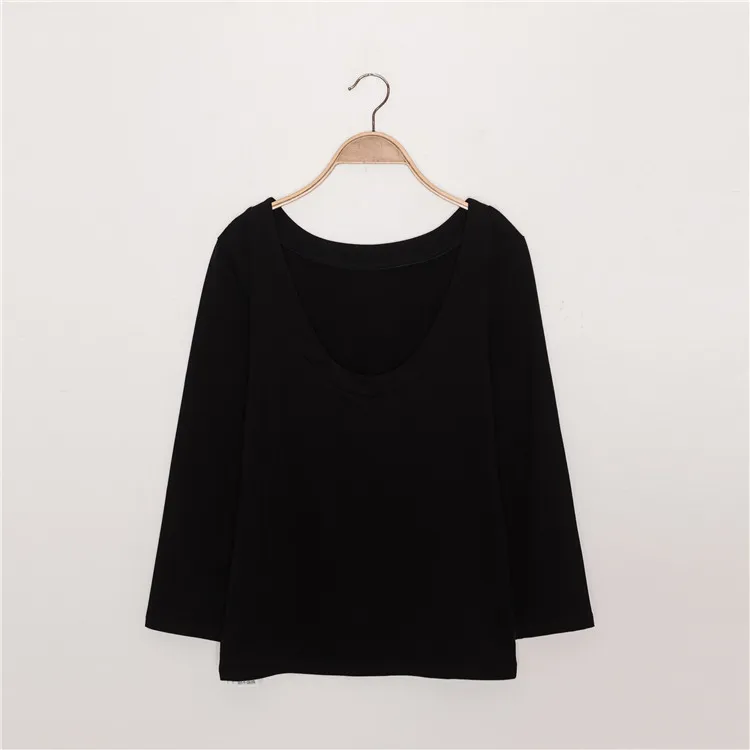 Белая или черная женская футболка с длинным рукавом и открытой спиной, простая женская футболка с круглым вырезом