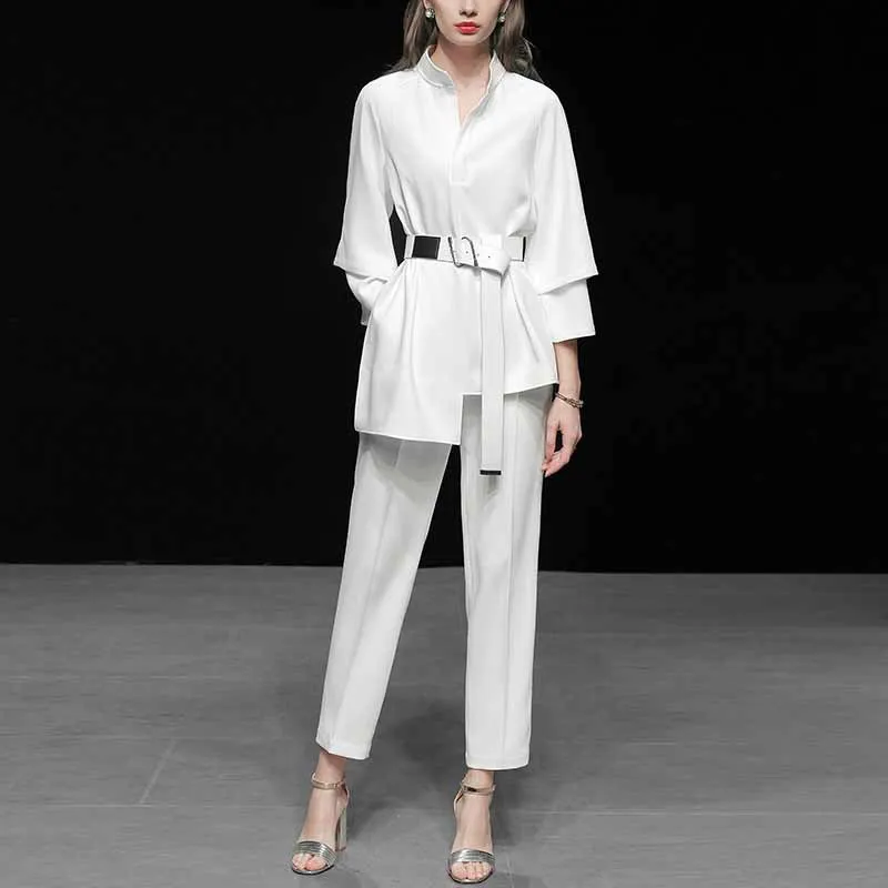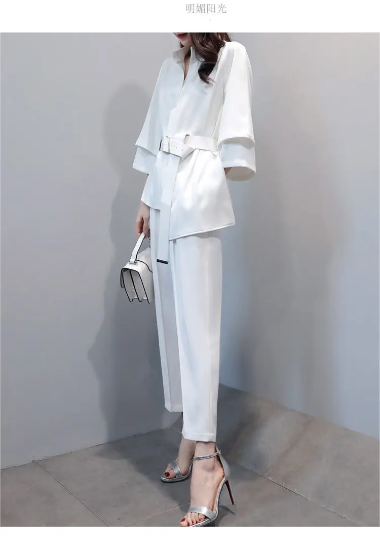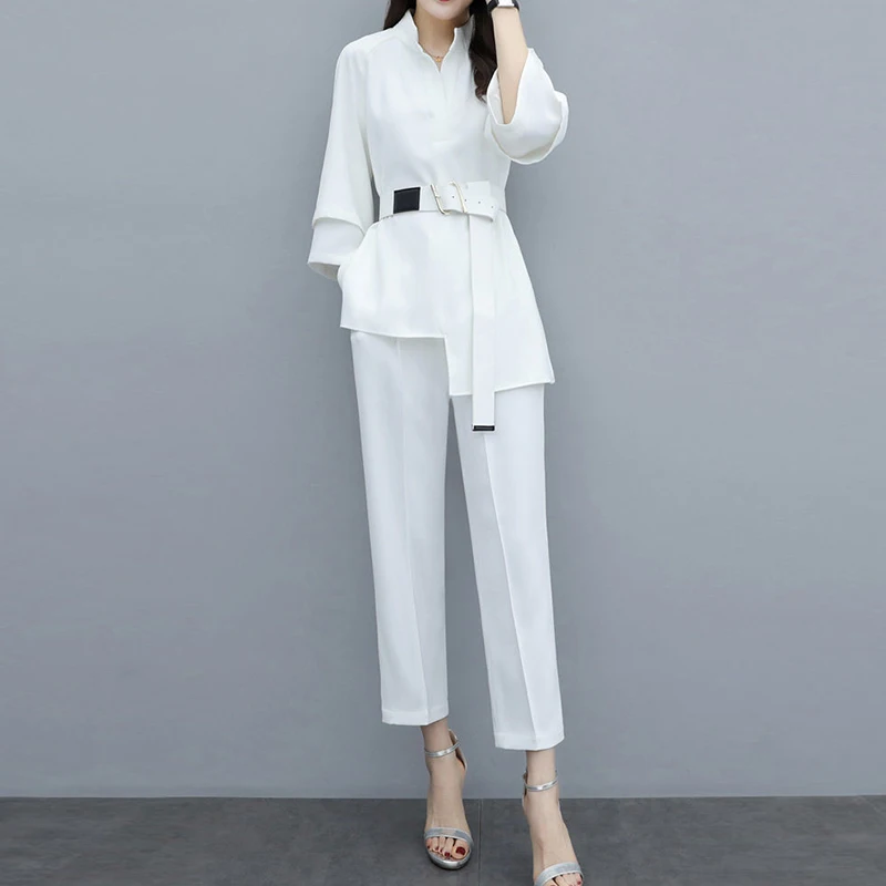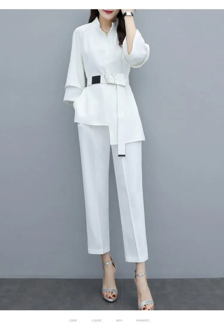 Женский офисный деловой костюм, повседневный облегающий костюм для работы, блузка с V-образным вырезом и брюки со шитьем, осенний комплект из 2 предметов