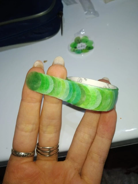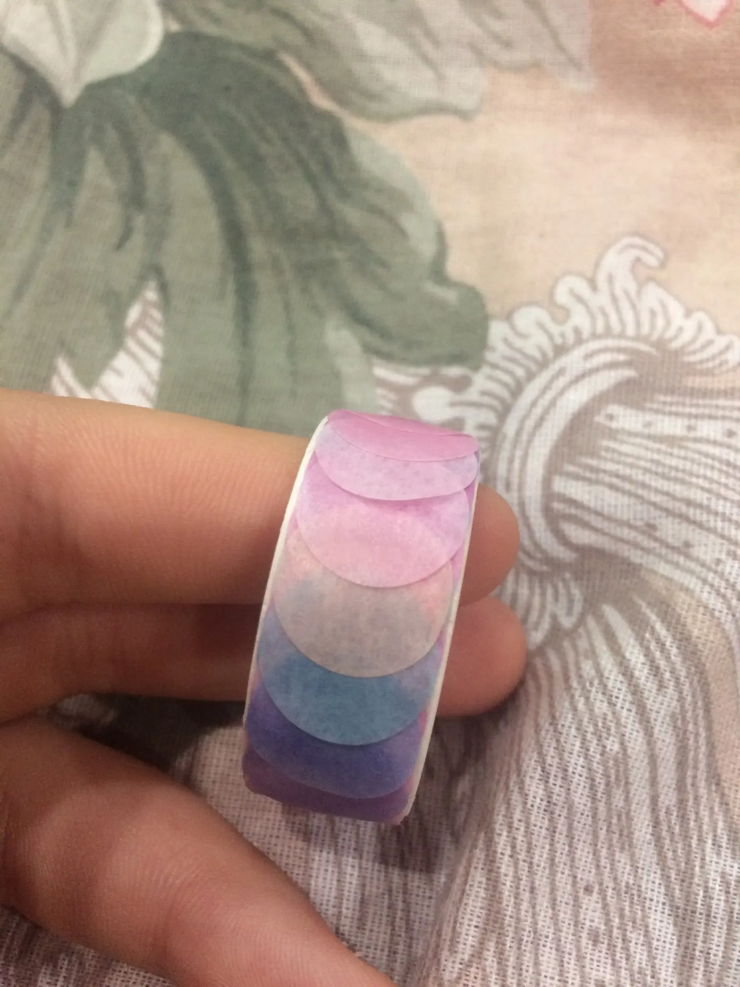 Ну просто шикарный "скотч"! Клейкие кружочки приятных цветов можно наклеить как и куда угодно, они кстати с лёгкостью отклеиваются, если приклеил неровно или просто передумал) я даже не знала, что такое вообще бывает, пользоваться им очень приятно. Спасибо продавцу!