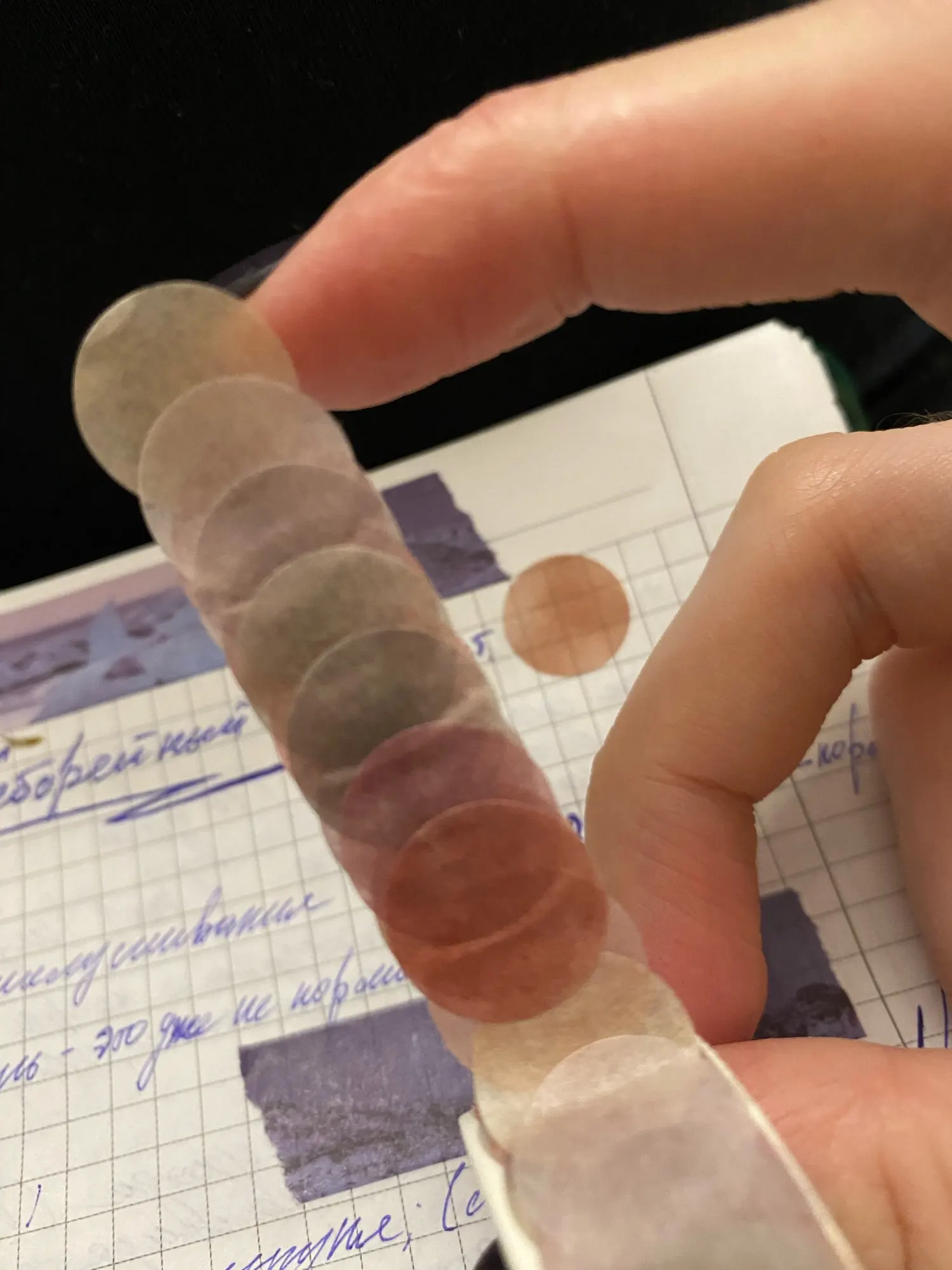 Заказала 27.12.2020,забрала 17.01.2021 доставкой DPD. Полностью соотвествует описанию, с продавцом не общалась. Покупала за $0.66 (50 с копейками руб). Доставать кружочки лично мне удобно, клеятся все хорошо. Очень похоже, что это наклейки на бумажной полупрозрачной основе.