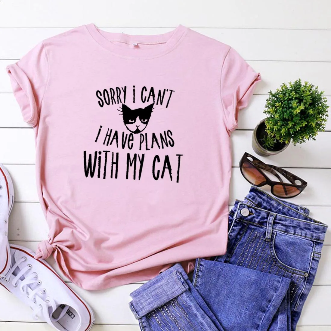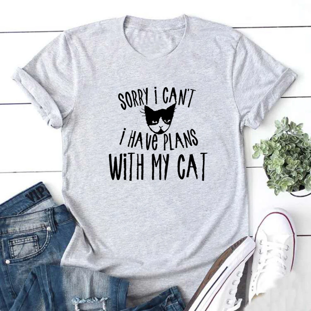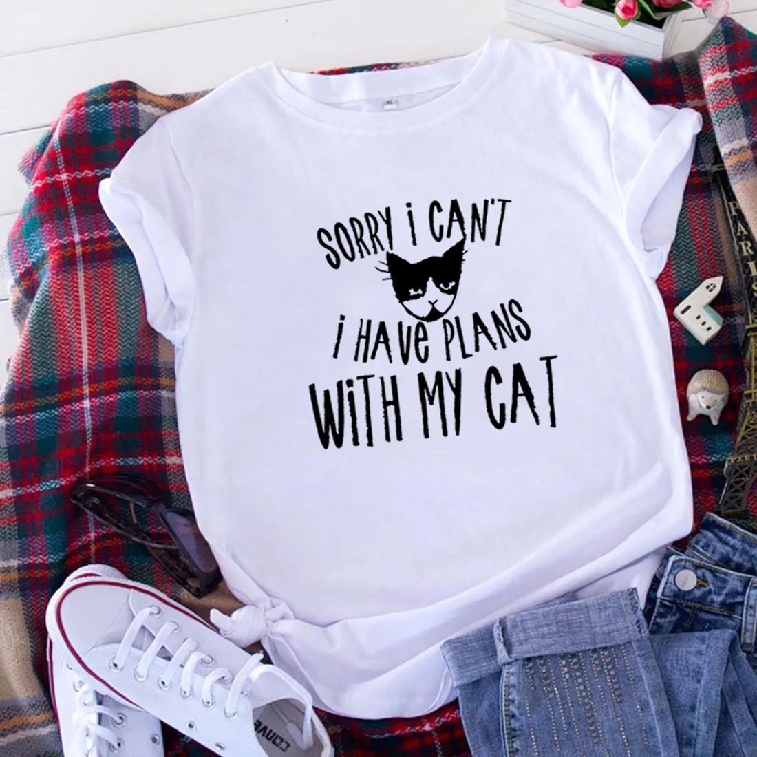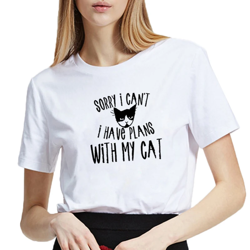 Извините, я не могу спланировать свою кошку, футболка, женские футболки с коротким рукавом, Женская свободная футболка с круглым вырезом, Женская белая футболка, Женский Топ