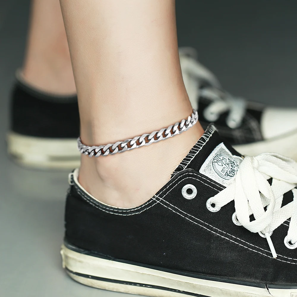 Женский ножной браслет 357 мм из нержавеющей стали, цепочка из кубинской панцирной цепи для девушек, Подарочная цепочка для повседневной носки диаметром 10 дюймов, DKAM05